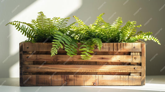 Fern–Wooden Crate–Air Purifying Indoor Plant 8" Hanging Basket