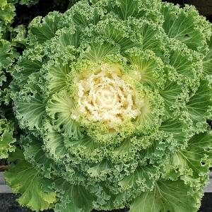 Kale 'Nagoya White' is a stunning ornamental kale variety known for its vibrant white and green rosette leaves. This plant adds a decorative touch to gardens and landscapes, especially during the cooler months when its colors are most vivid. It is often used for its aesthetic appeal rather than culinary purposes.