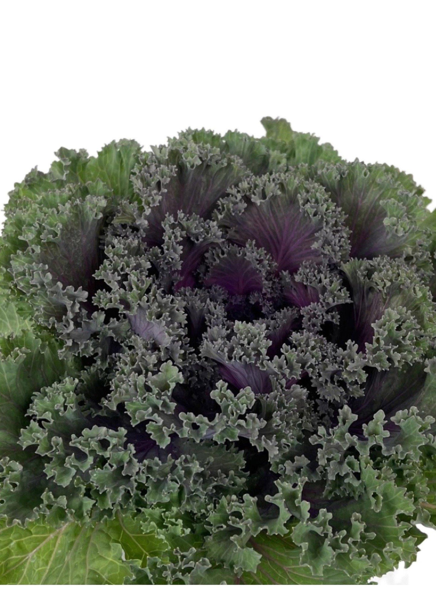 Kale 'Kamome Red' is an ornamental kale variety known for its stunning, frilly leaves that transition from deep green to vibrant purplish-red at the center. This plant adds a splash of color to gardens, especially during the cooler months when other plants may not be as vibrant.