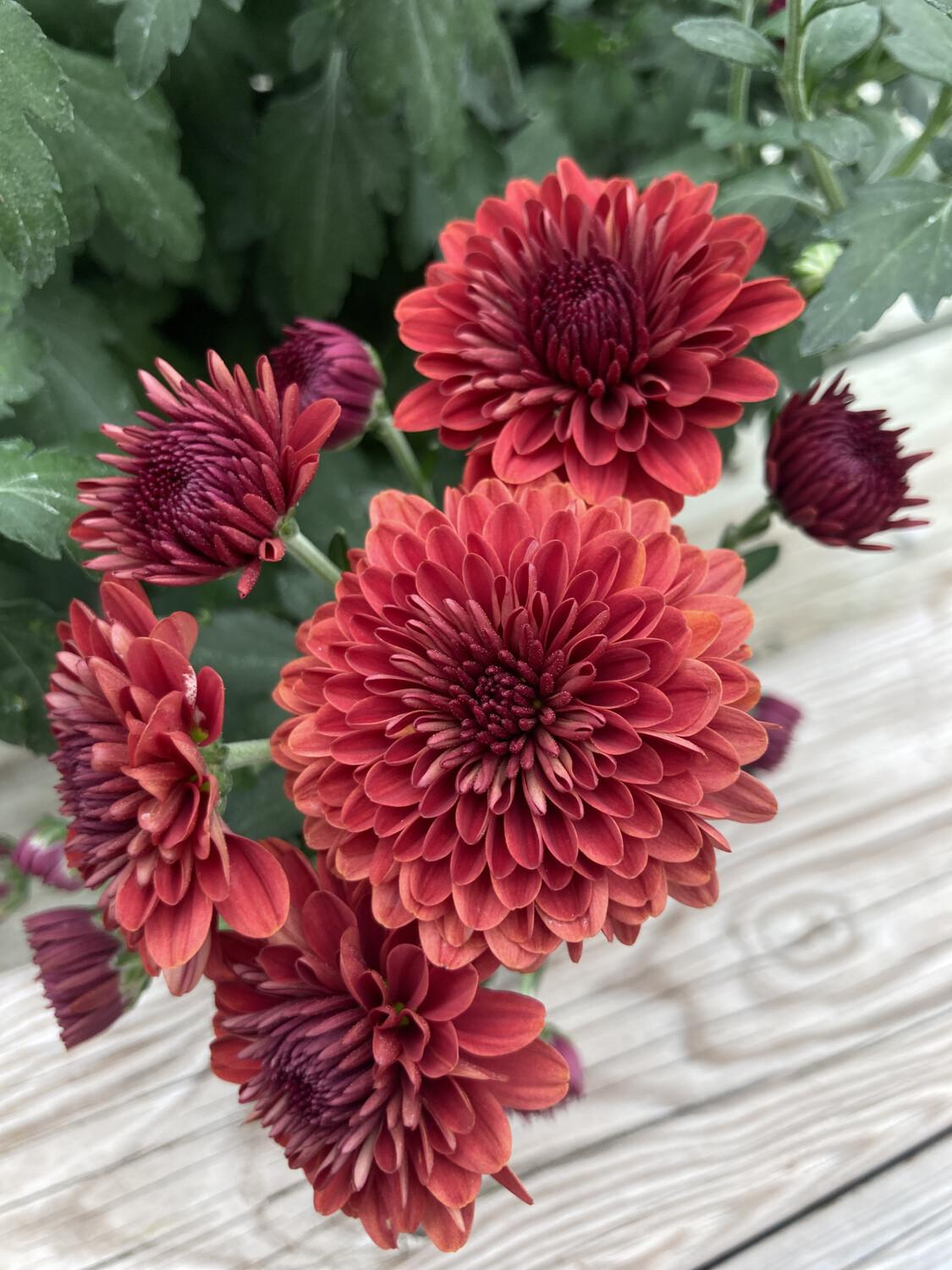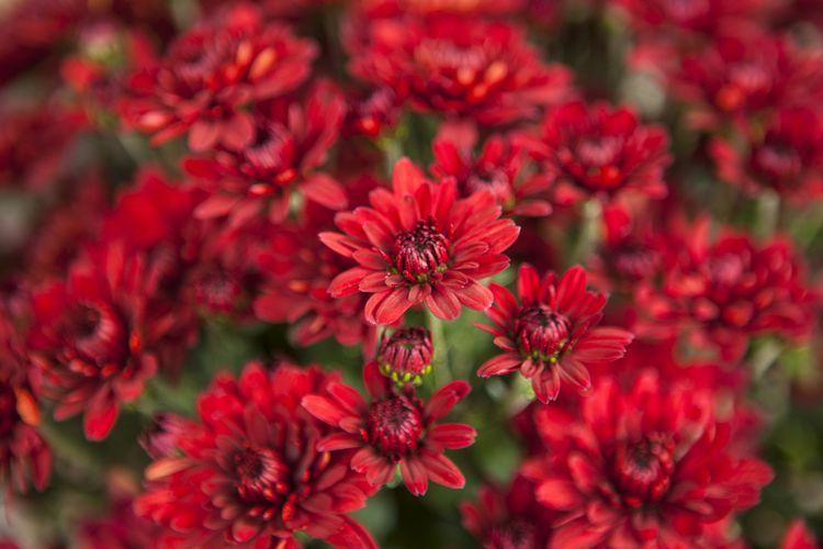 The 'Koko Red' Garden Mum is a vibrant, eye-catching perennial known for its rich red blooms. It adds a splash of color to any garden or container arrangement, making it a popular choice for autumn displays.