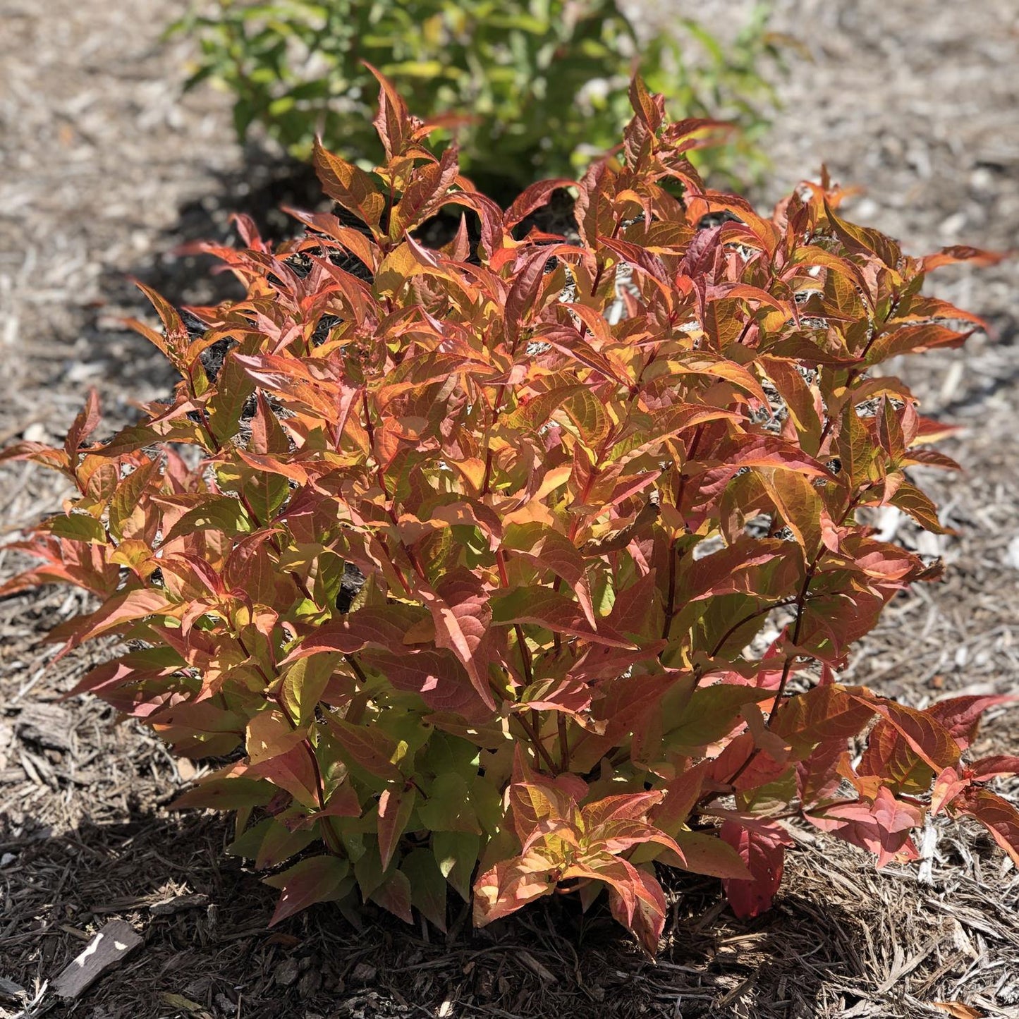 'Kodiak Orange' is a vibrant deciduous shrub known for its stunning orange foliage in the fall. It offers a compact growth habit and produces small, yellow trumpet-shaped flowers in the summer, attracting pollinators such as bees and butterflies.