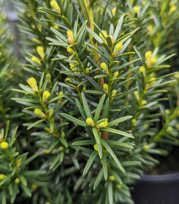 Taxus media 'Hicksii', commonly known as Hicksii' Anglojap Yew, is a versatile evergreen shrub known for its dense, upright growth habit. It features dark green needle-like foliage and is often used for hedging and screening due to its columnar shape and adaptability to pruning.