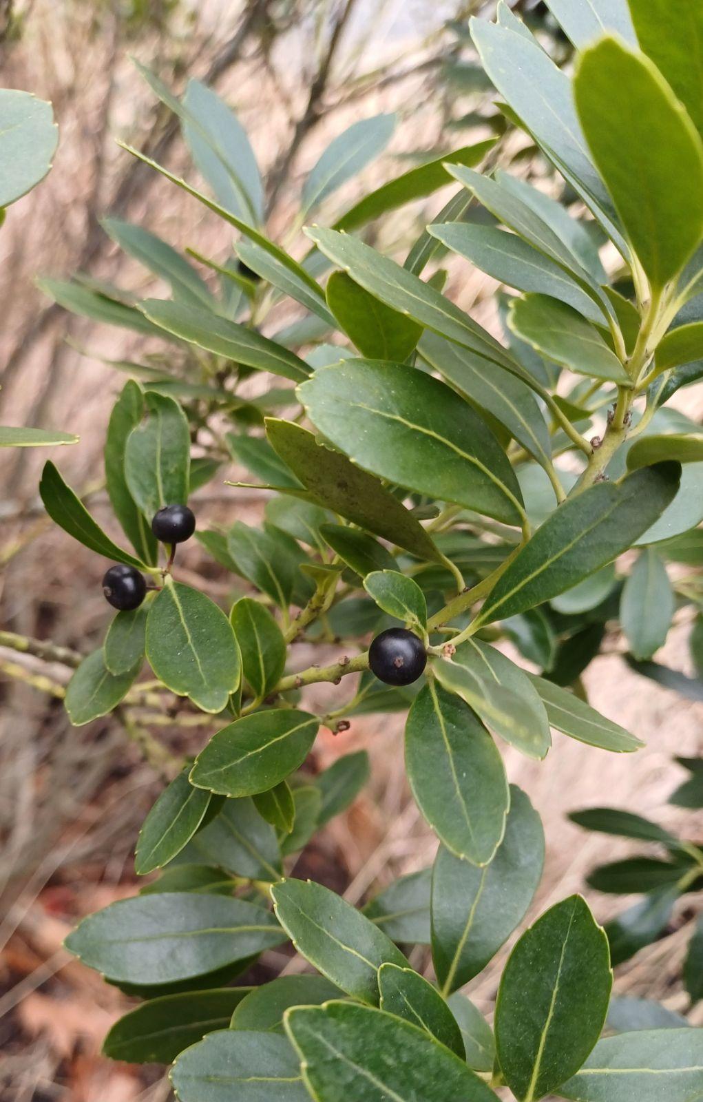 Ilex glabra, commonly known as Inkberry Holly, is an evergreen shrub native to eastern North America. It is valued for its glossy, dark green leaves and small, black berries that provide winter interest. This plant is well-suited for use in hedges, foundation plantings, and naturalized areas.