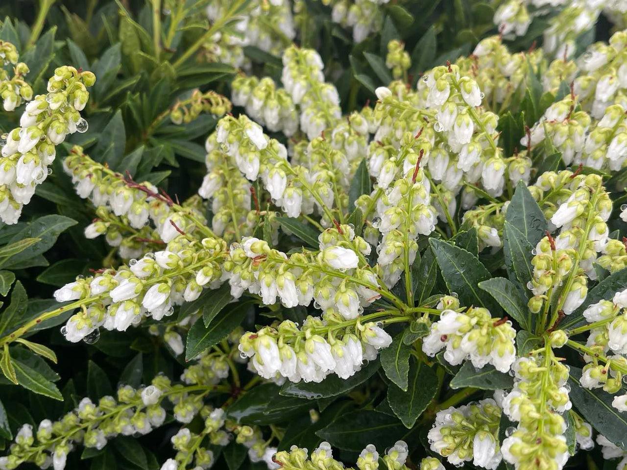 Pieris japonica 'Prelude', commonly known as 'Prelude' Japanese Andromeda, is a compact, evergreen shrub known for its attractive foliage and clusters of bell-shaped flowers. It is a popular choice for gardens due to its year-round interest and ability to thrive in a variety of conditions.