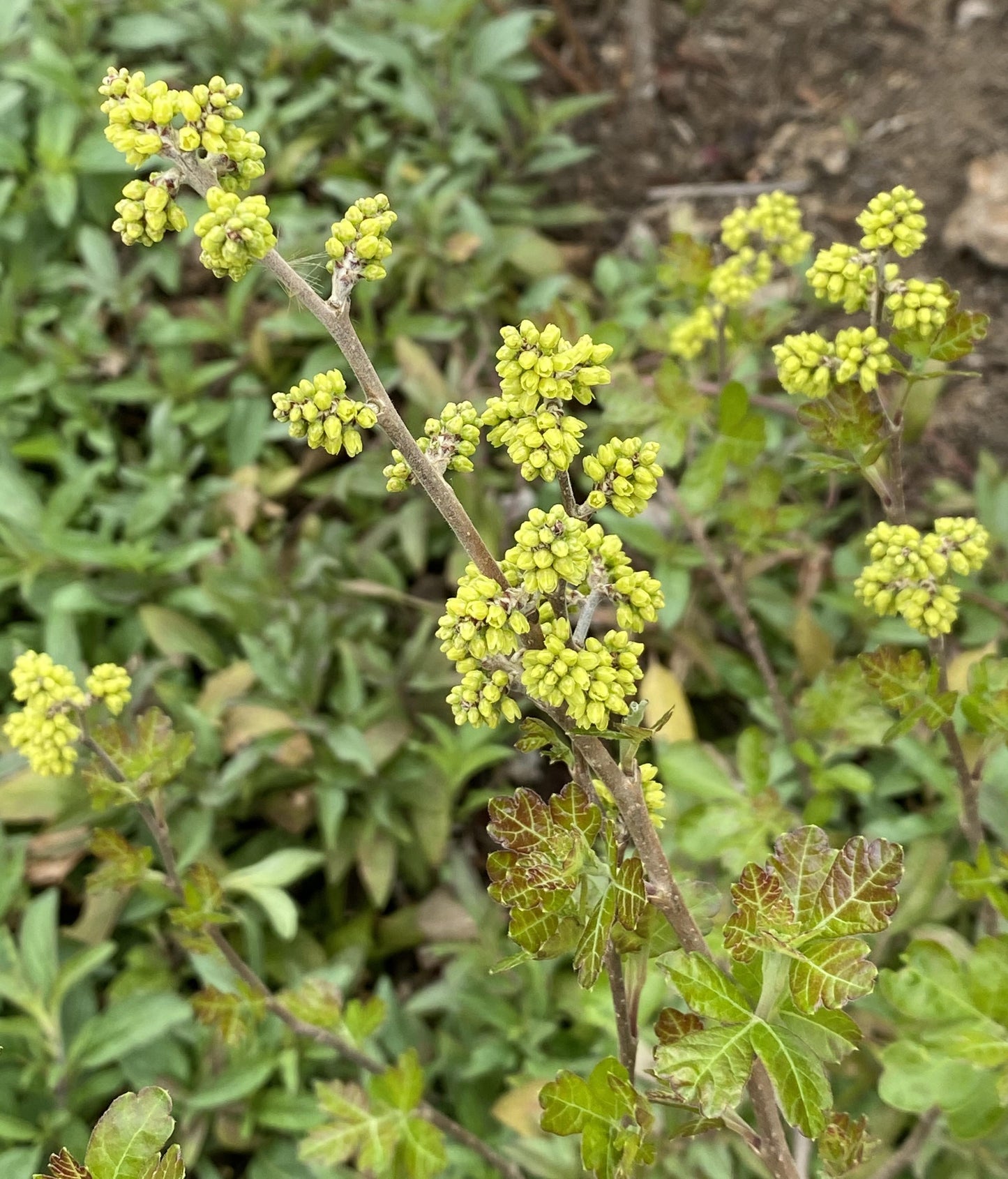 Rhus aromatica 'Gro-Low', commonly known as Gro-Low Fragrant Sumac, is a low-growing, spreading shrub known for its vibrant fall foliage and fragrant leaves. It is an excellent ground cover option that provides year-round interest with its trifoliate leaves and small yellow flowers that bloom in early spring.