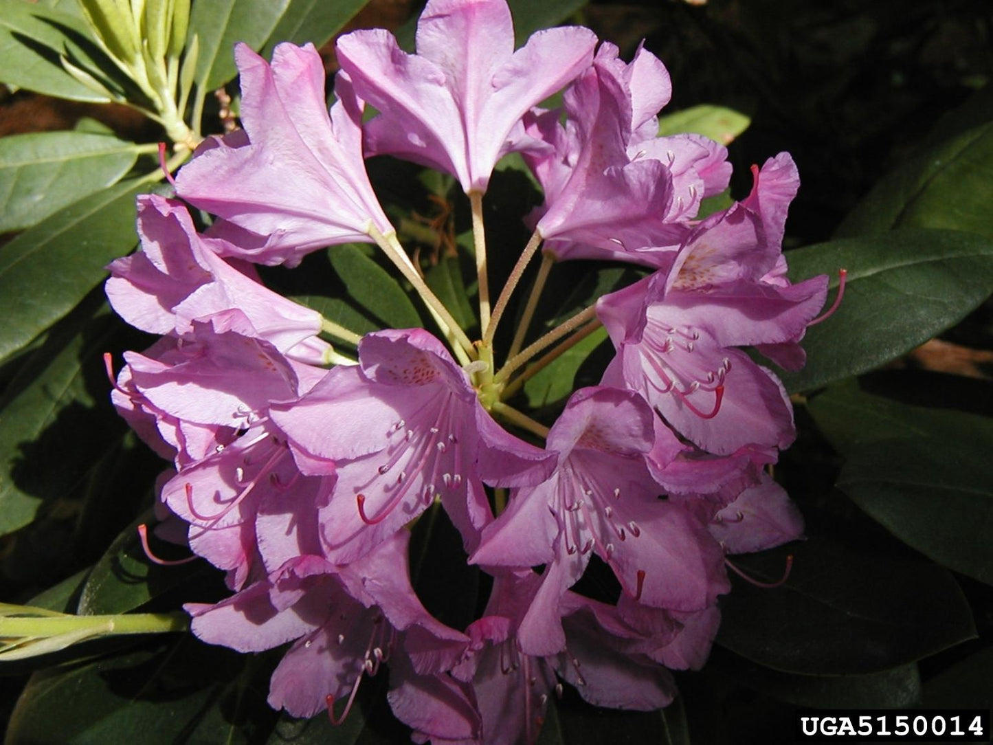 The Rhododendron maximum, commonly known as the Rosebay Rhododendron, is a large, evergreen shrub native to the eastern United States. It is known for its large, leathery leaves and showy clusters of pink to white flowers that bloom in late spring to early summer. This plant is a favorite for its lush foliage and beautiful blooms, making it a popular choice for woodland gardens and naturalized landscapes.