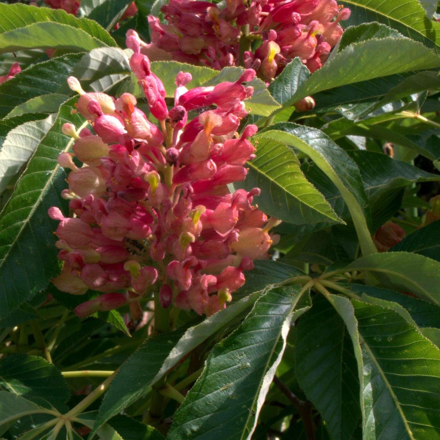 Aesculus pavia, commonly known as Red Buckeye, is a deciduous shrub or small tree native to the southeastern United States. It is prized for its striking red flowers that bloom in spring, attracting hummingbirds and other pollinators. The plant has a rounded form and can serve as an ornamental feature in gardens.