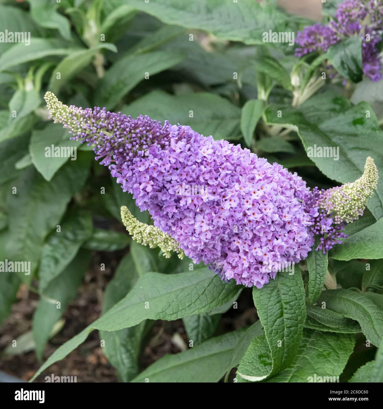 The 'Pugster Amethyst' Butterfly Bush is a compact, dwarf variety known for its large, fragrant, amethyst-colored blooms. It offers a continuous display of flowers from early summer to frost, attracting butterflies and hummingbirds to the garden.