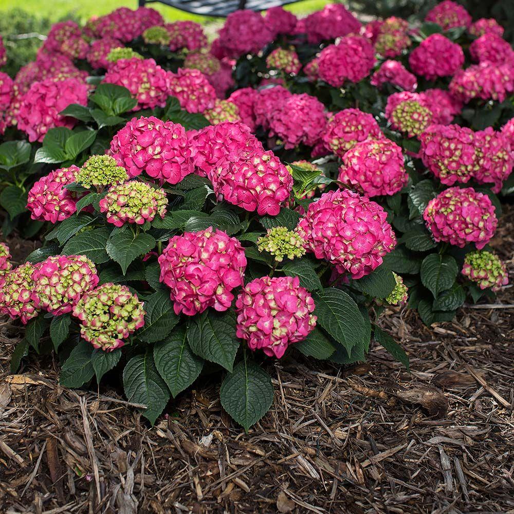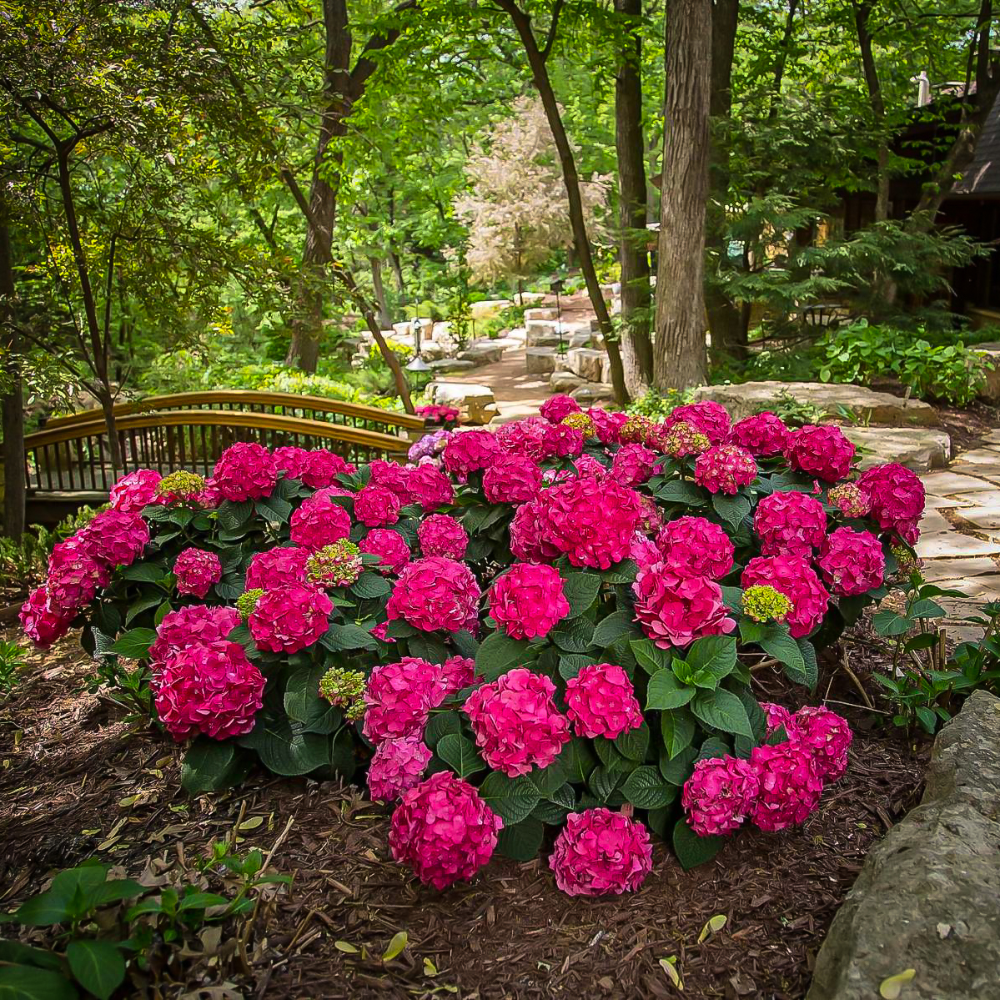 The 'Summer Crush' Bigleaf Hydrangea is a vibrant, compact shrub known for its stunning raspberry red or neon purple blooms. This hydrangea is perfect for adding a splash of color to any garden or landscape, offering a long-lasting bloom season from early summer to fall.