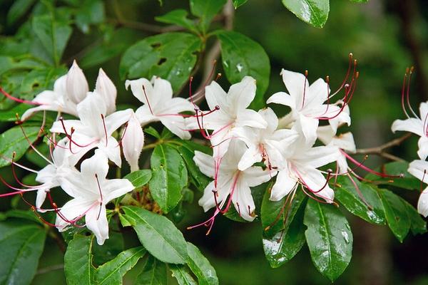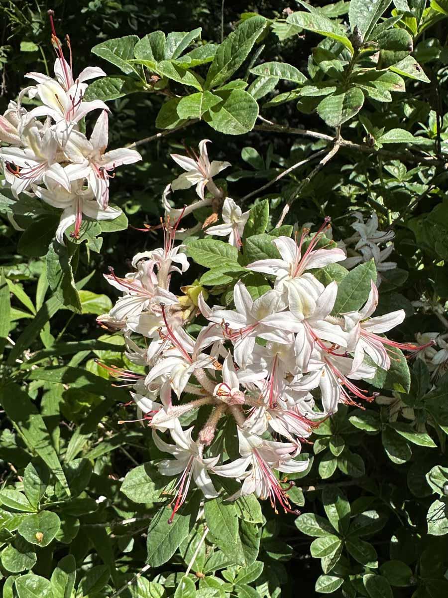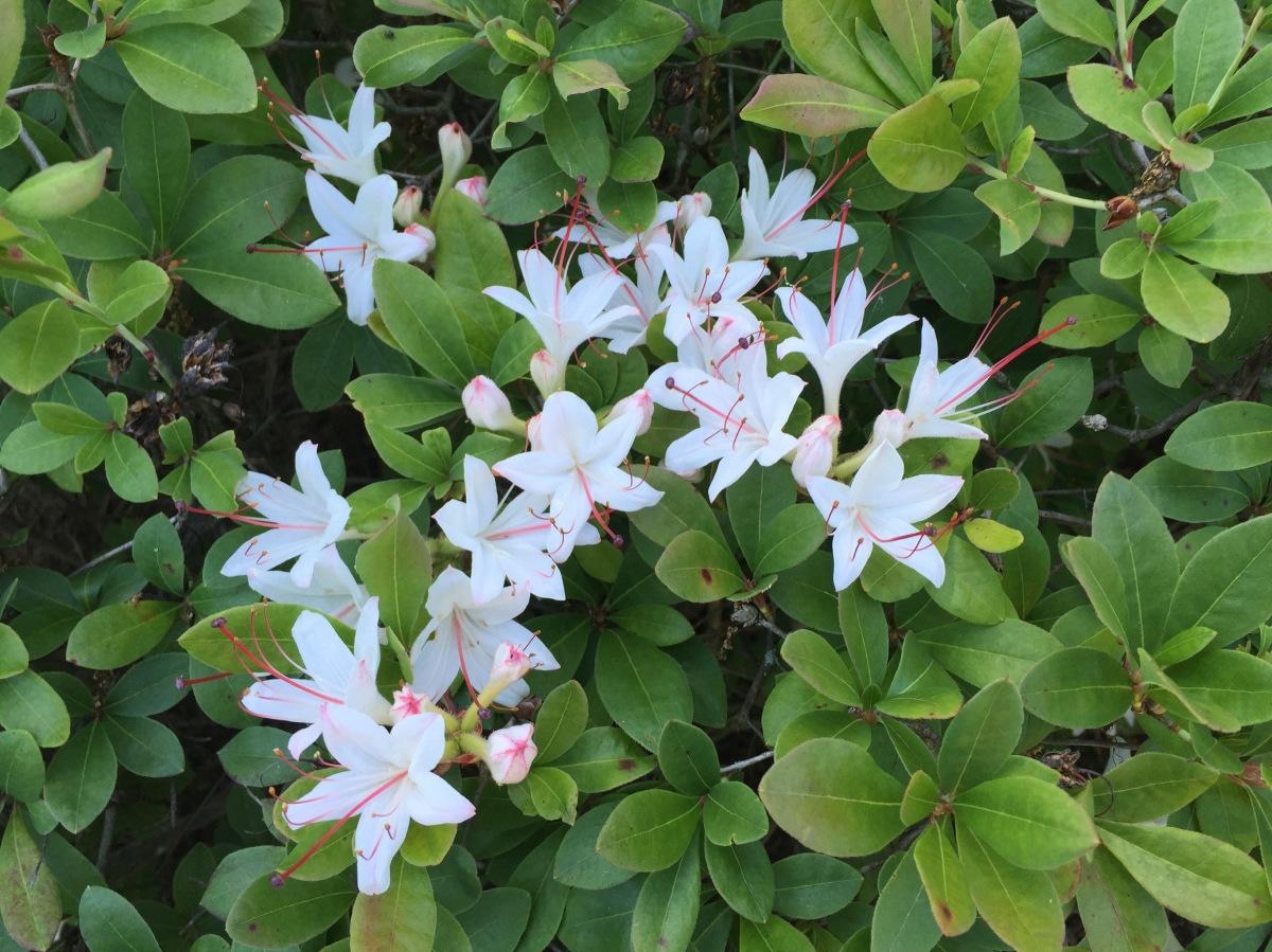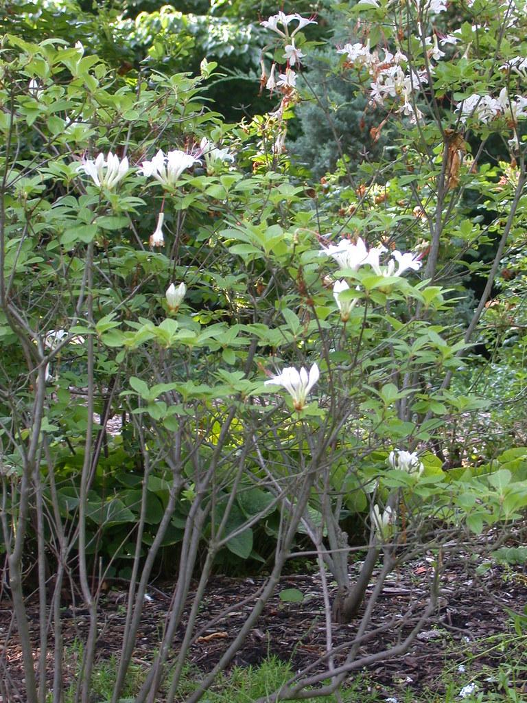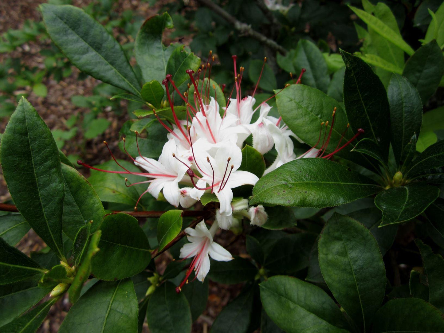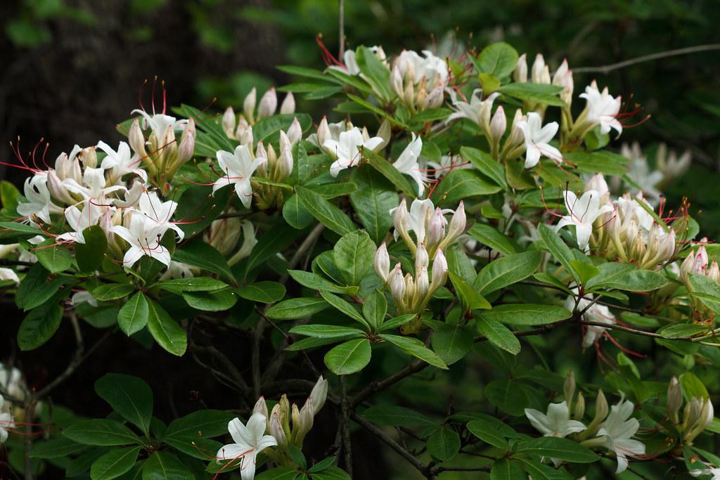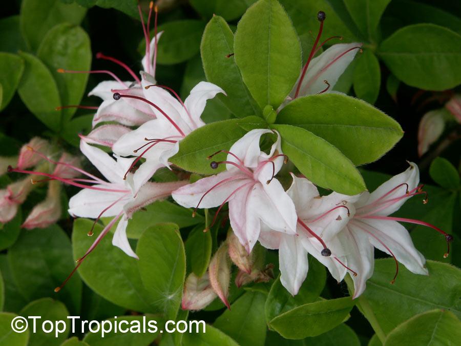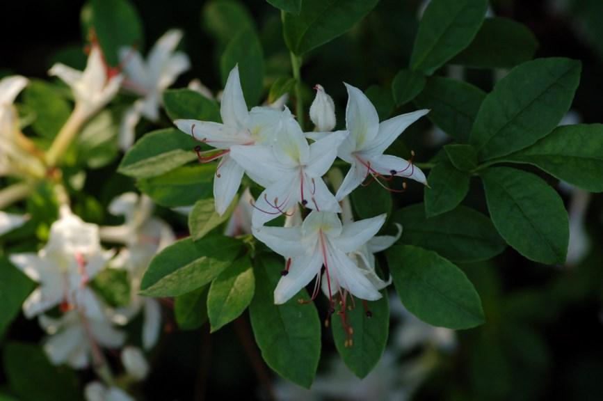 Azalea arborescens, commonly known as Sweet Azalea, is a deciduous shrub known for its fragrant, showy white to pink flowers that bloom in late spring to early summer. It is native to the eastern United States and thrives in woodland settings.