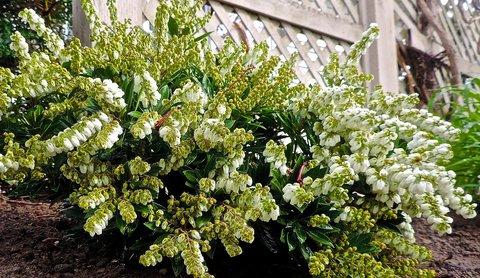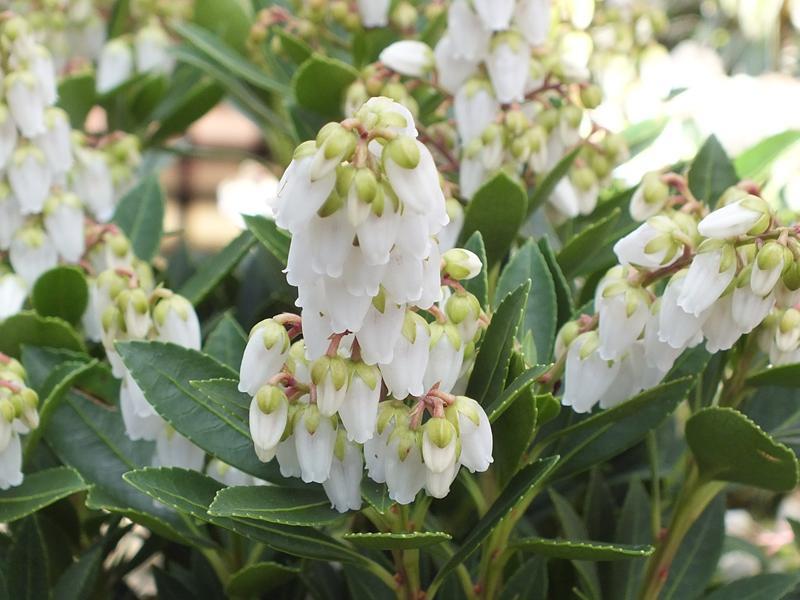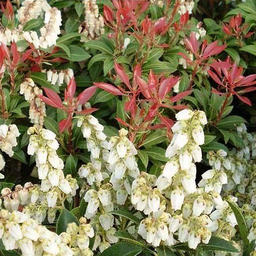 Pieris japonica 'Prelude', commonly known as 'Prelude' Japanese Andromeda, is a compact, evergreen shrub known for its attractive foliage and clusters of small, bell-shaped flowers. The new foliage emerges with a striking red hue, gradually maturing to a glossy green. This plant is a popular choice for adding year-round interest to gardens.
