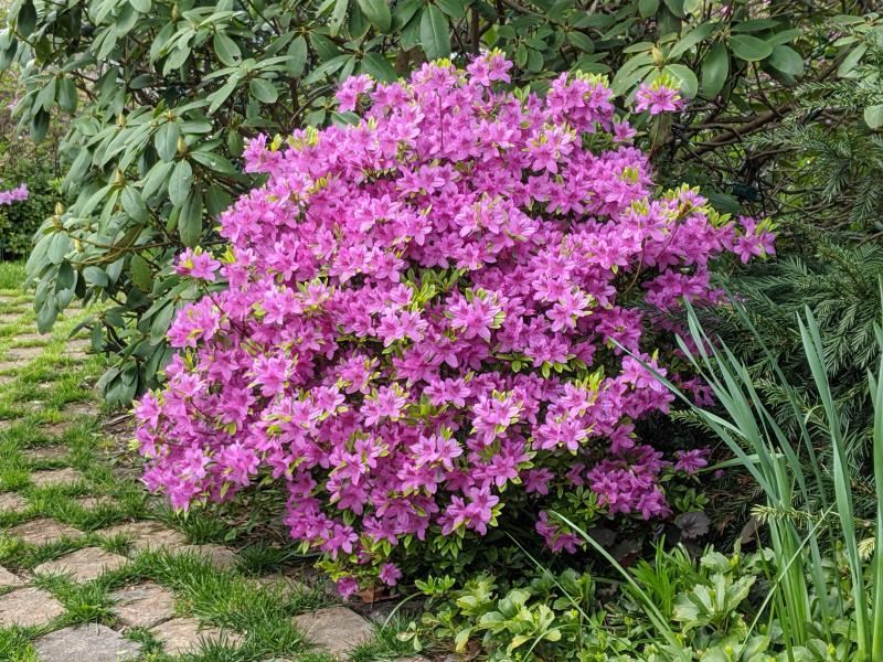 Azalea 'Karen' is a popular evergreen shrub known for its vibrant, lavender-pink blooms that appear in mid-spring. It is a member of the Rhododendron family and is cherished for its compact growth habit and ability to thrive in a variety of garden settings.