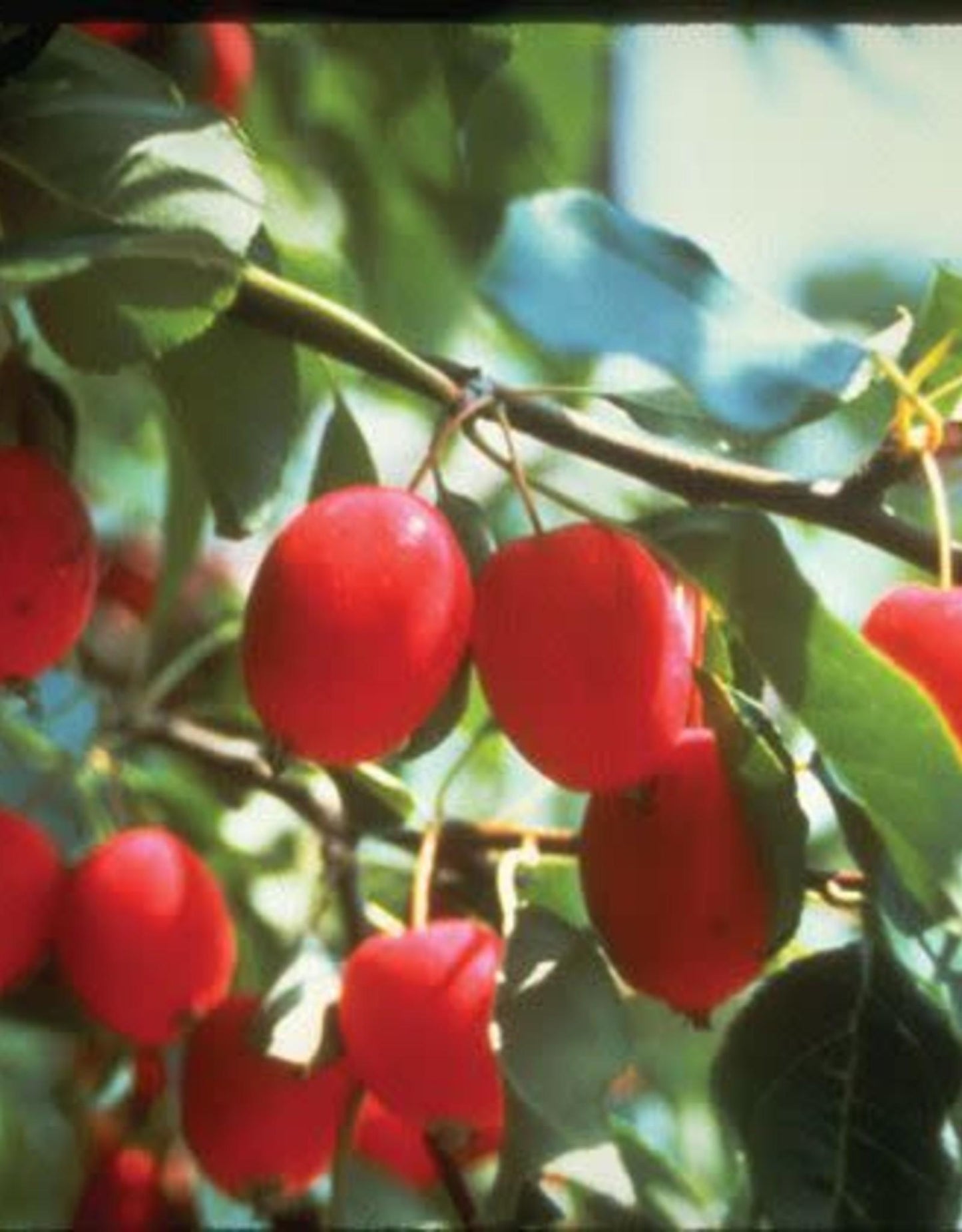 The Malus 'Dolgo', commonly known as the Dolgo Crabapple, is a hardy and ornamental tree known for its beautiful spring blossoms and small, edible fruit. It is a popular choice for both gardens and landscapes due to its vibrant flowers and attractive fruit, which can be used in jellies and preserves.