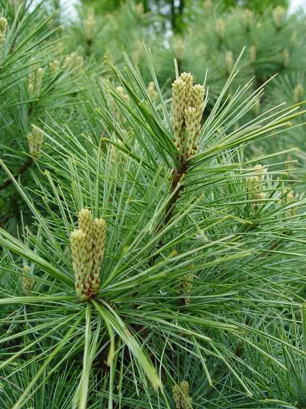 Pinus strobus, commonly known as Eastern White Pine, is a large, long-lived pine native to eastern North America. It is known for its soft, flexible needles and tall, straight trunk. This majestic tree can reach heights of up to 80 feet in the wild, making it a popular choice for large landscapes and naturalized areas.