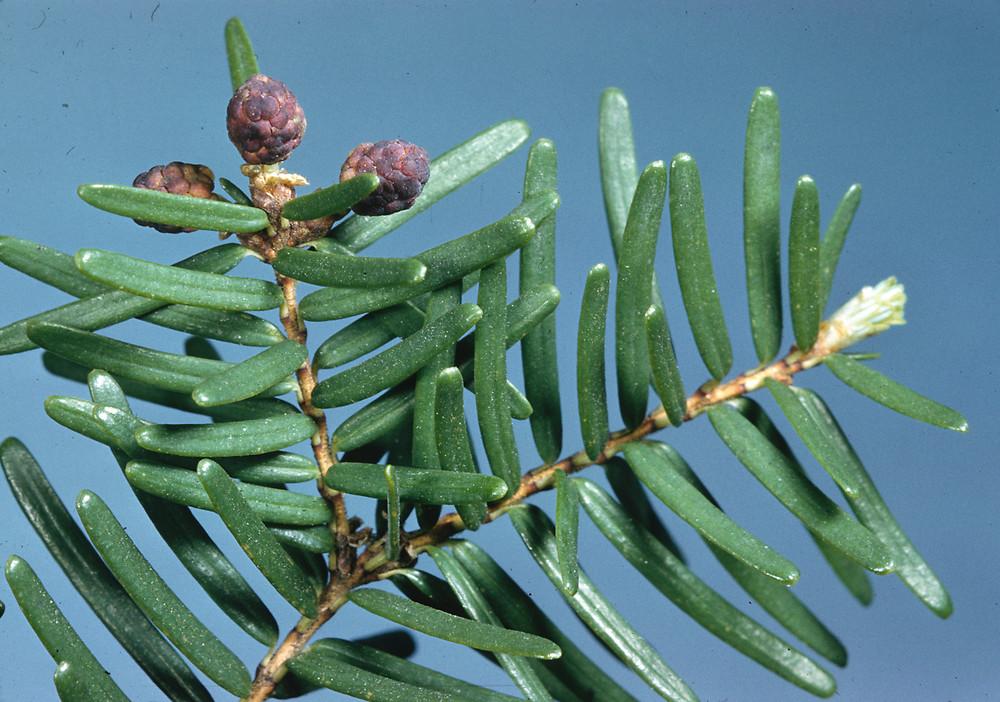 Tsuga canadensis, commonly known as the Canadian Hemlock, is a graceful evergreen tree native to eastern North America. It features delicate, lacy foliage and a pyramidal shape, making it a popular choice for ornamental landscapes. This tree is known for its adaptability and can thrive in a variety of conditions, providing year-round beauty and habitat for wildlife.