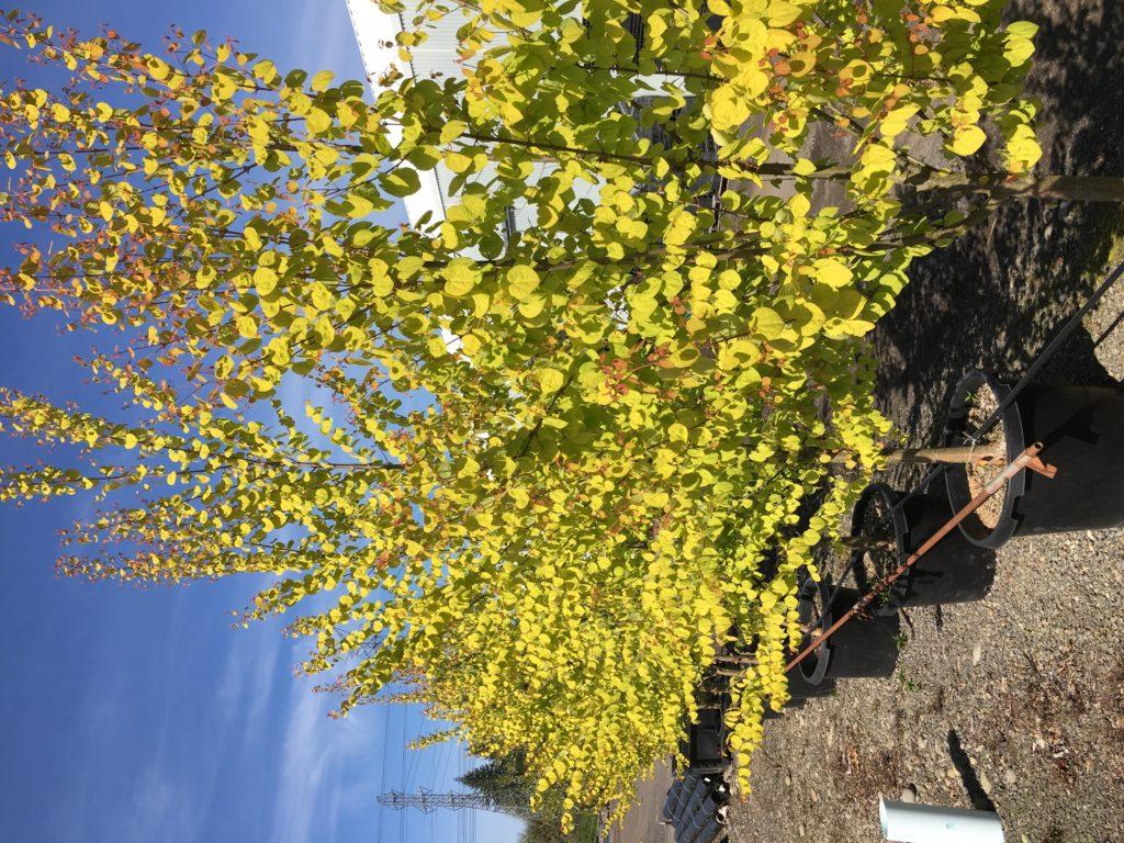 The Cercidiphyllum japonicum 'Claim Jumper' is a unique cultivar of the Katsura tree, known for its striking golden foliage. This deciduous tree is appreciated for its heart-shaped leaves that turn a brilliant yellow in the fall, often accompanied by a sweet, caramel-like fragrance. It's a stunning choice for adding color and interest to any landscape.