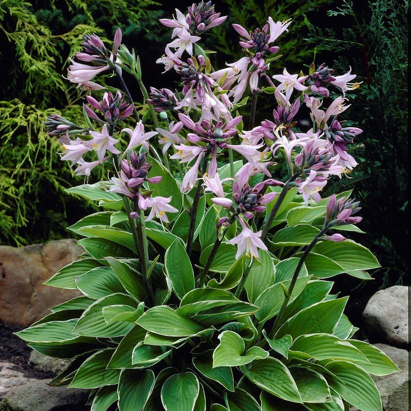 Hosta fortunei 'Francee' is a popular and versatile perennial known for its striking foliage. The leaves are heart-shaped with a dark green center and a crisp white margin, providing a beautiful contrast. This plant is a favorite among gardeners for its ability to brighten shady areas and its low maintenance requirements.