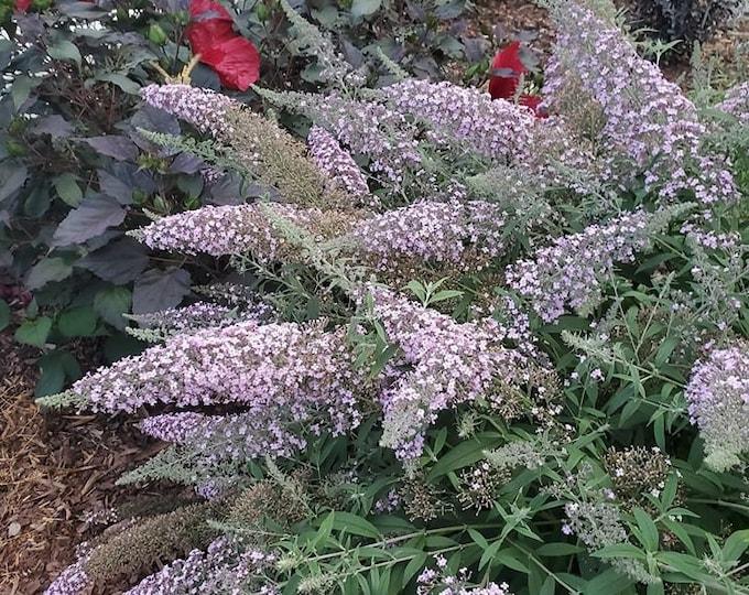 The 'Grand Cascade' Butterfly Bush is known for its stunning, cascading clusters of lavender-purple flowers. This deciduous shrub is a favorite among gardeners for its ability to attract butterflies and other pollinators. Its long, arching branches create a graceful, weeping effect, making it a striking addition to any garden.