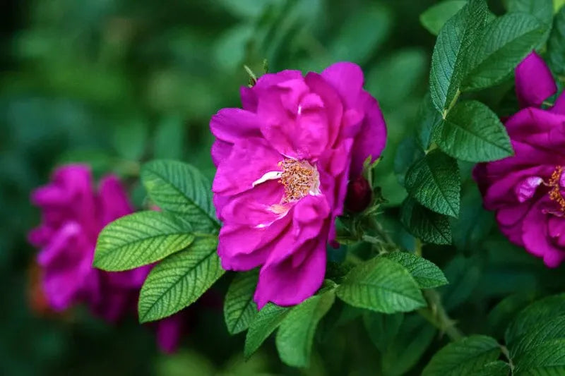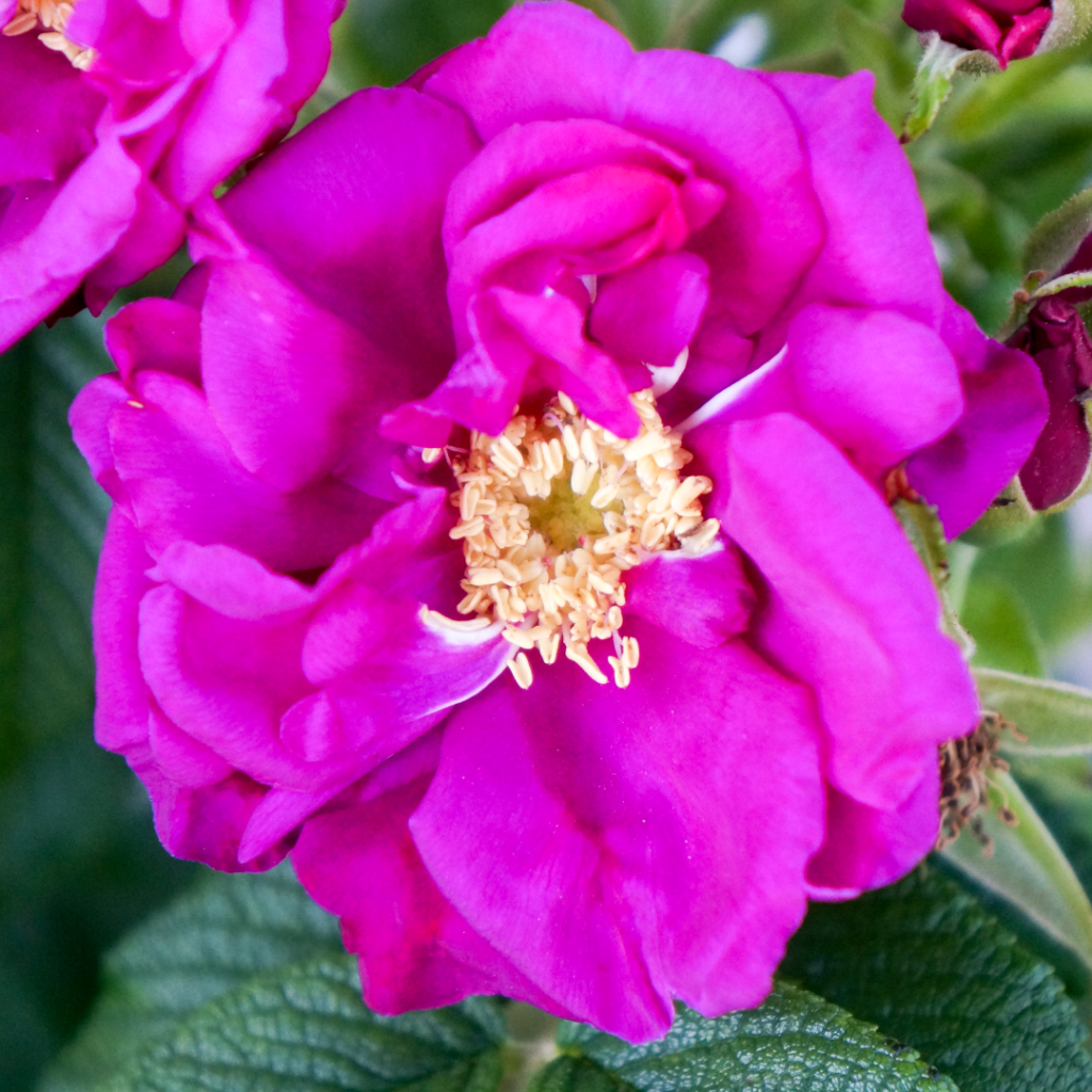 The 'Purple Pavement' Rugosa Rose is a robust and hardy shrub rose known for its vibrant purple-red blooms and delightful fragrance. It is a low-maintenance plant that thrives in a variety of conditions, making it an excellent choice for landscape use.
