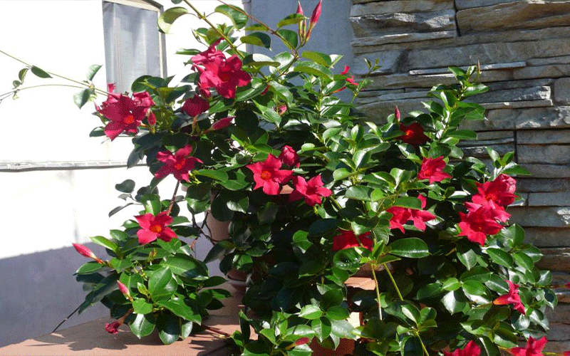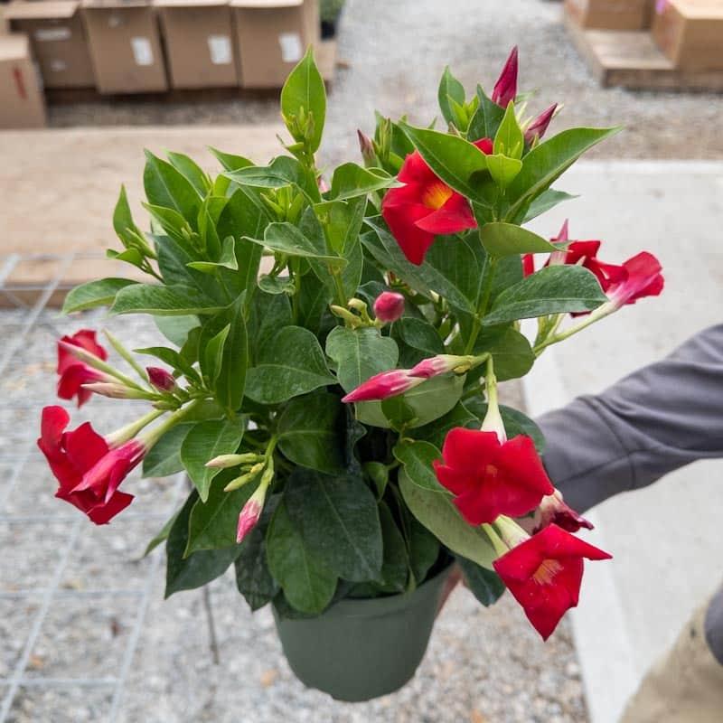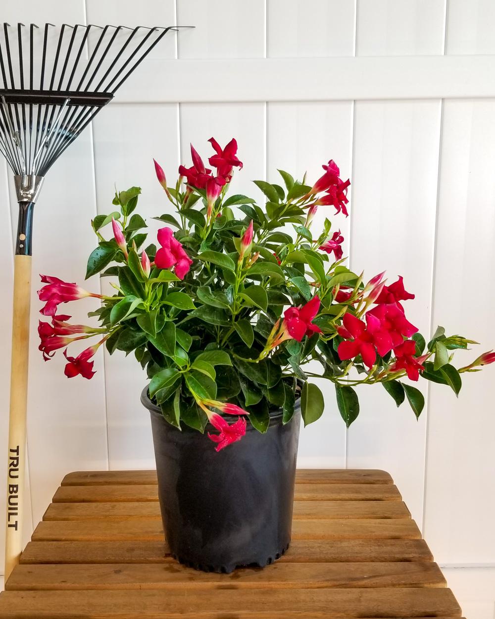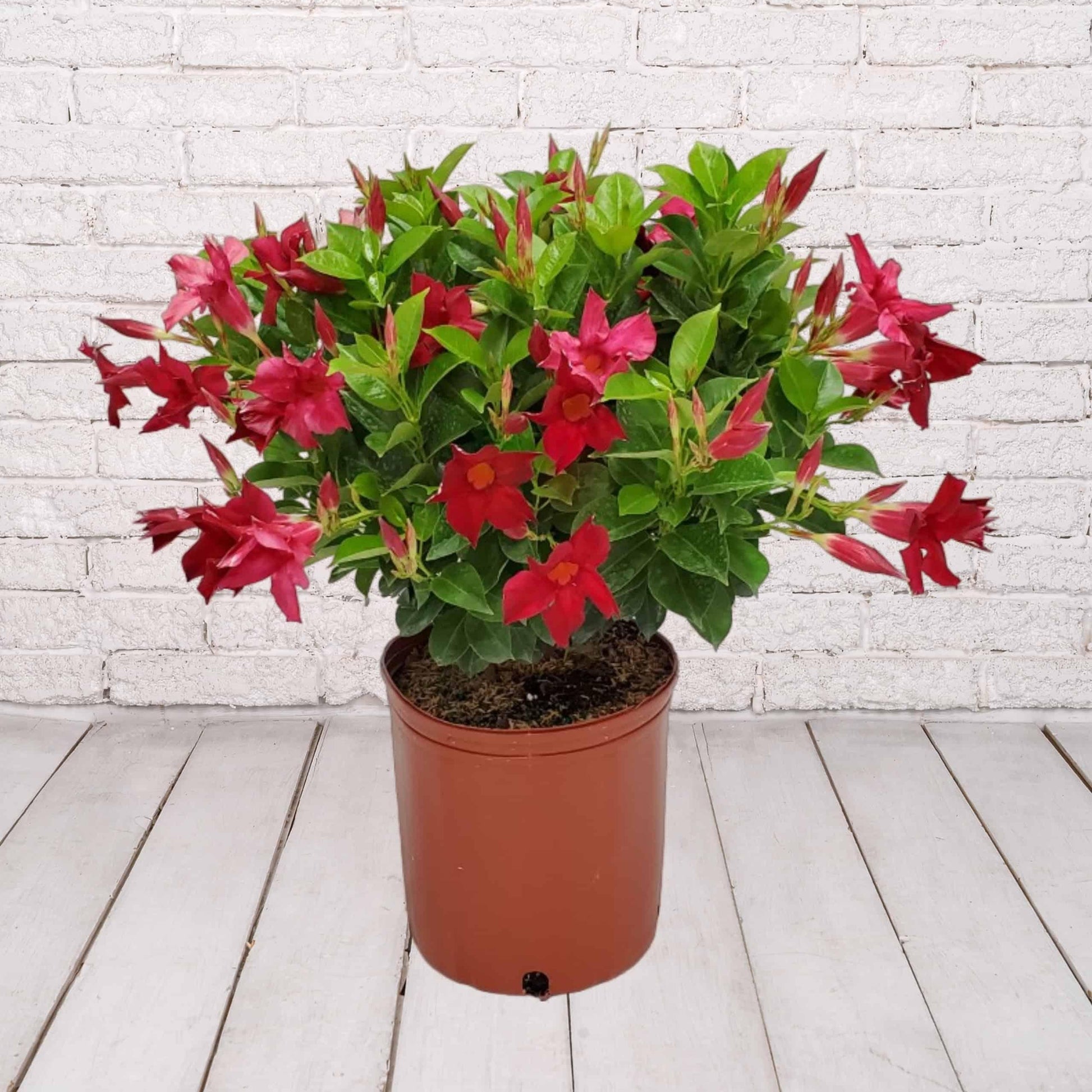 Red Dipladenia–Bush–Vibrant flowers for gardens 6" Pot