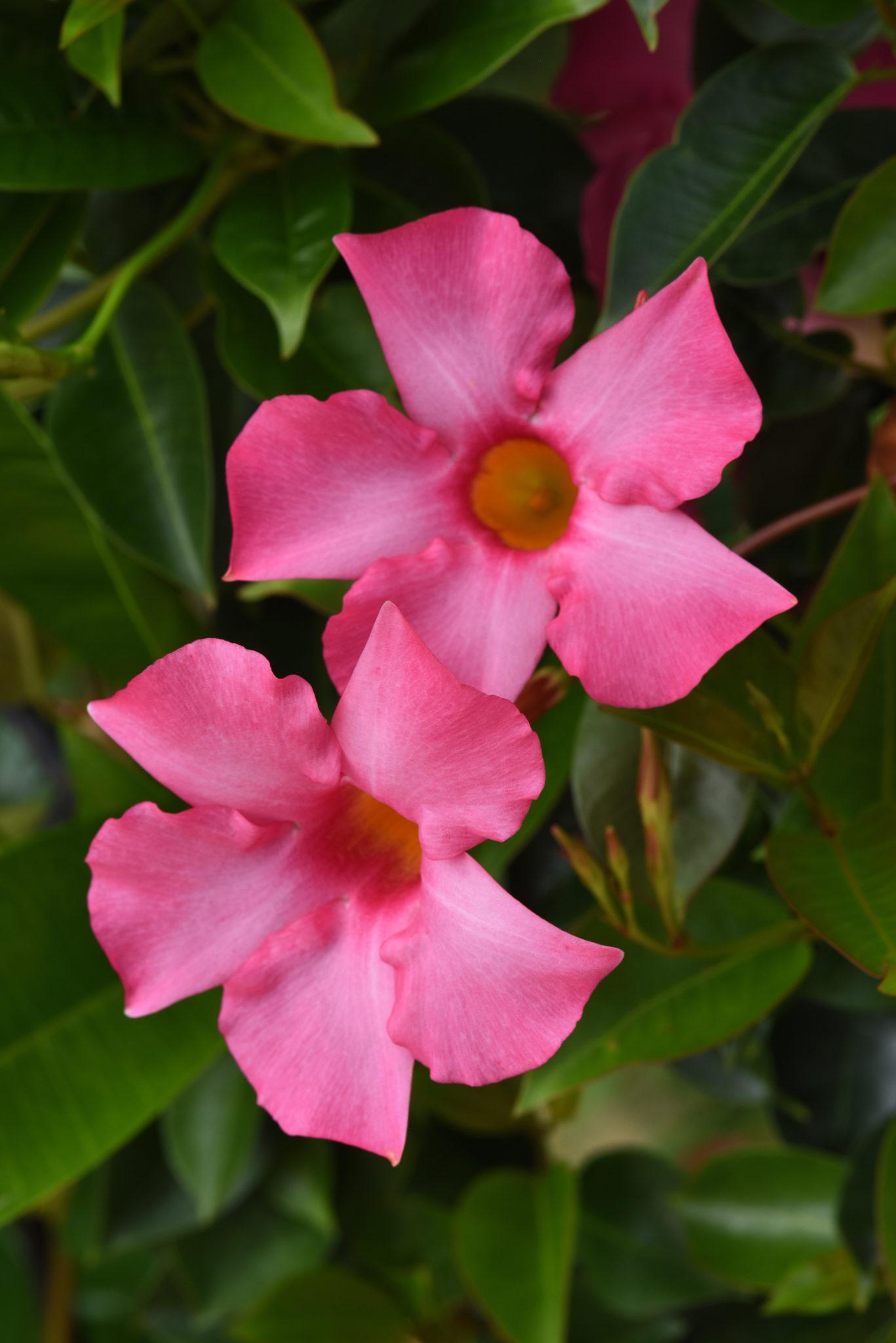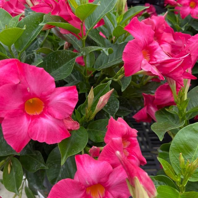The Pink Dipladenia is a stunning tropical plant known for its vibrant pink trumpet-shaped flowers and glossy green foliage. It is a versatile plant that can be grown as a bush, in containers, or as a climbing vine, making it a popular choice for adding a splash of color to gardens and patios.