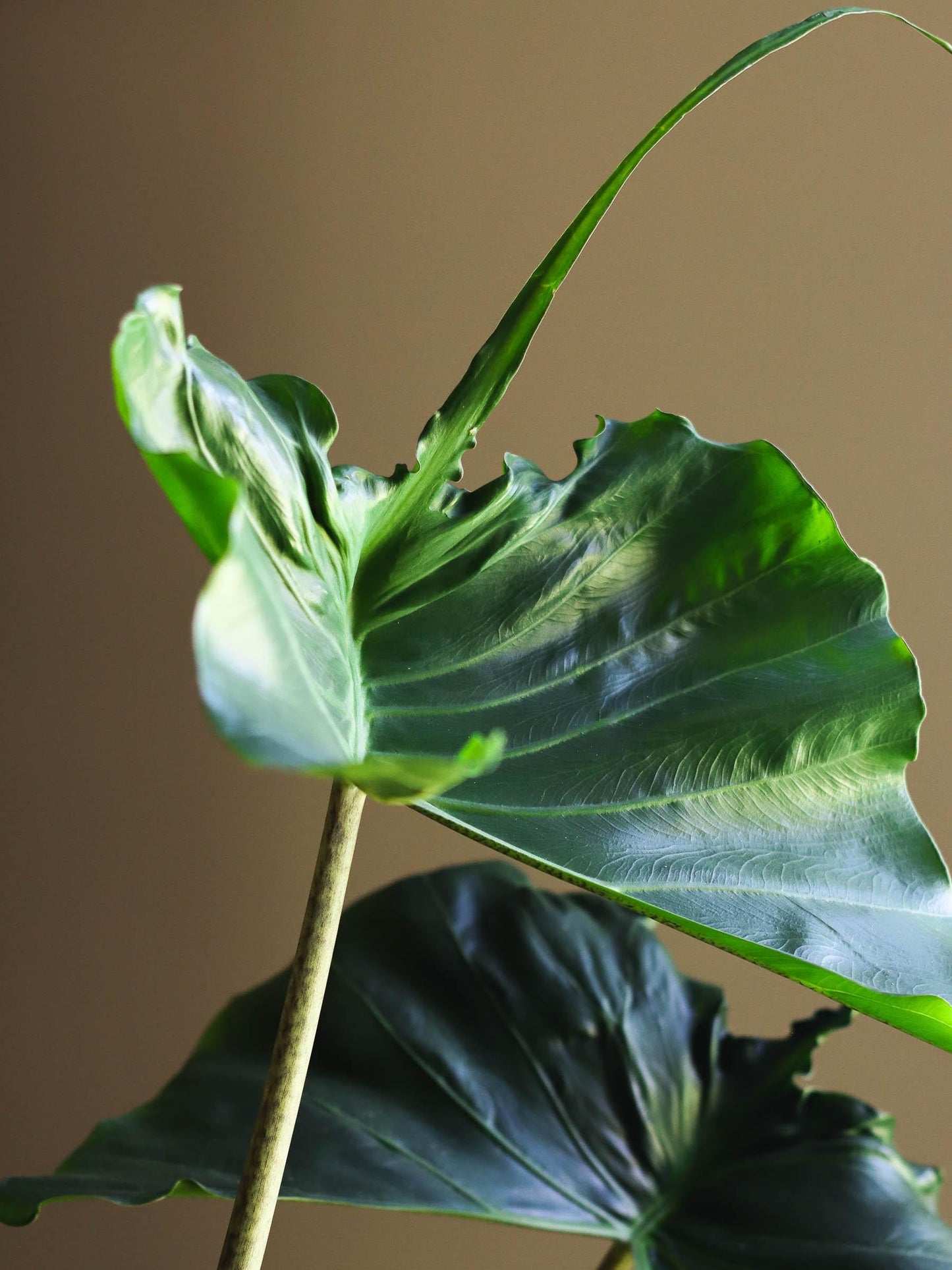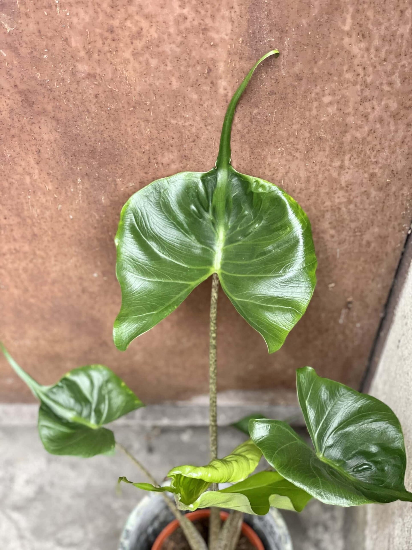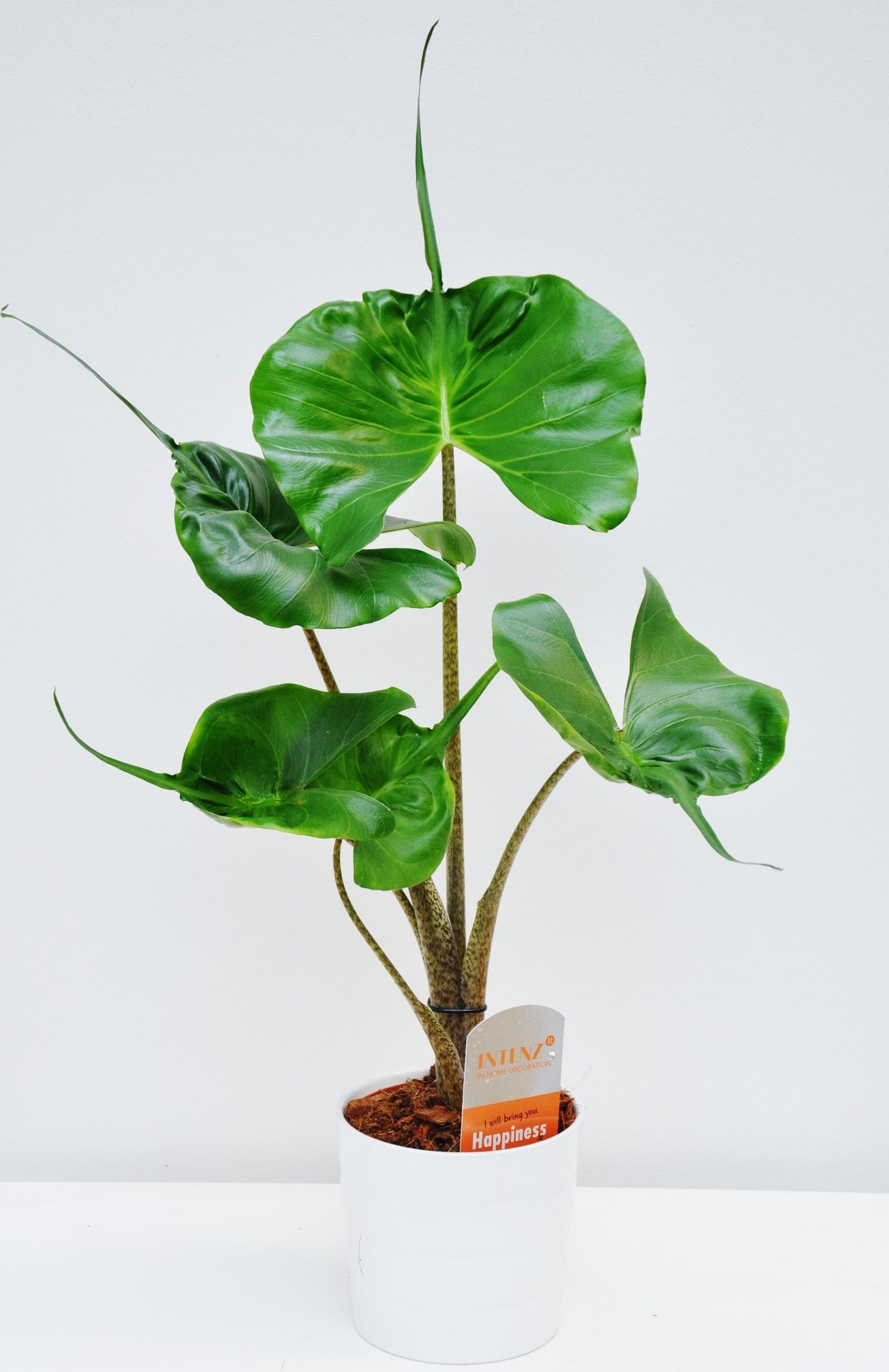 Alocasia 'Stingray' is a striking tropical plant known for its unique foliage that resembles the wings and tail of a stingray. Its glossy, deep green leaves are complemented by prominent veins and a distinctive tail-like tip. This plant adds an exotic touch to any indoor space or shaded garden area.