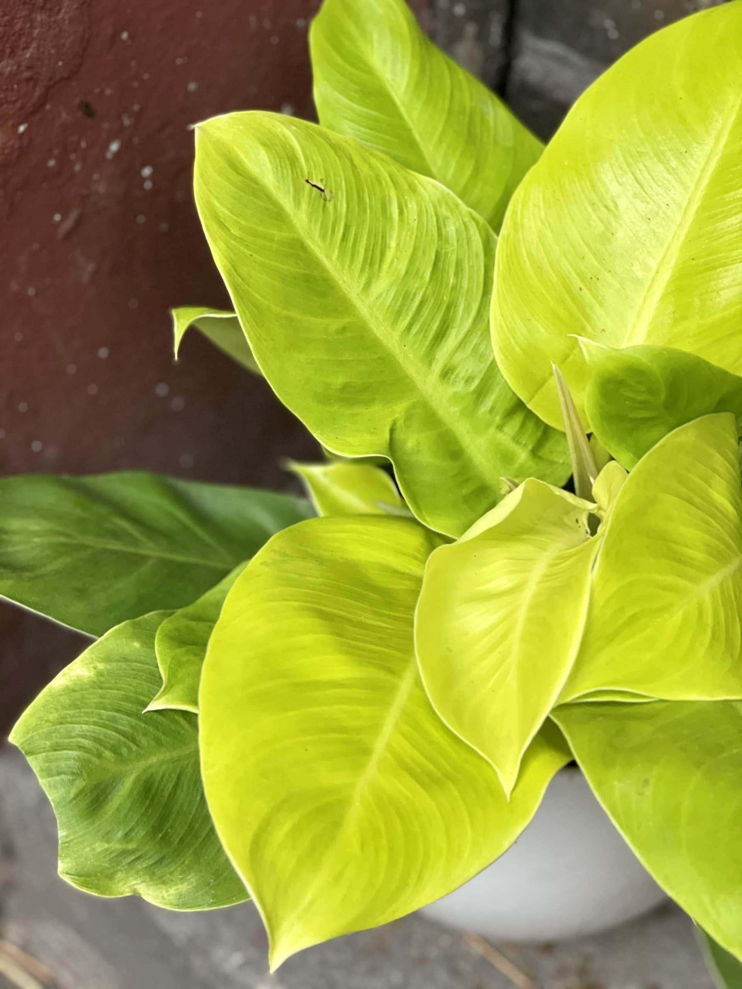 Philodendron 'Moonlight' is a popular plant known for its beautiful leaves. The leaves are large, heart-shaped, and a vibrant green color. This plant is a great addition to any indoor space and is relatively easy to care for, making it a favorite among houseplant enthusiasts.