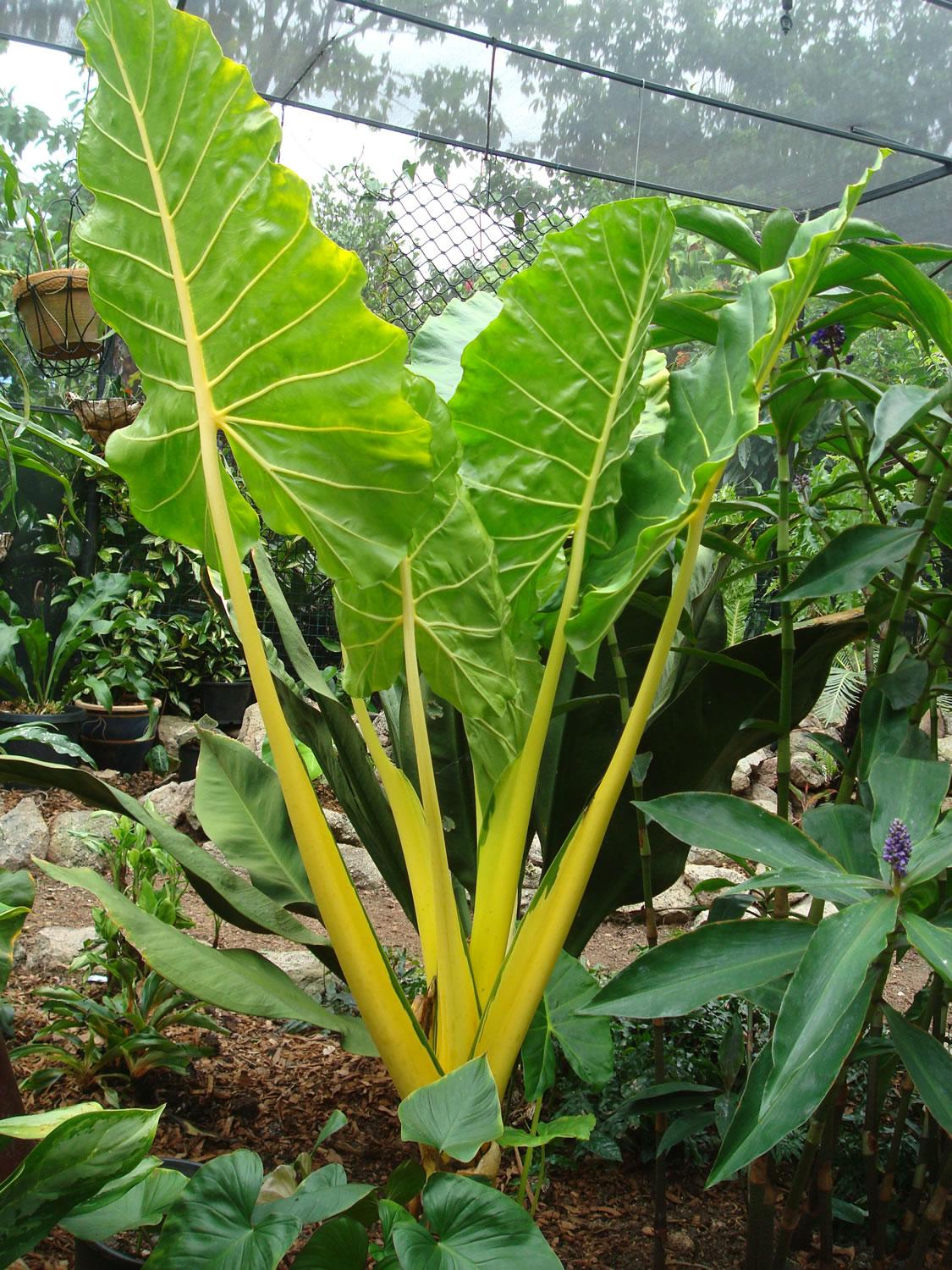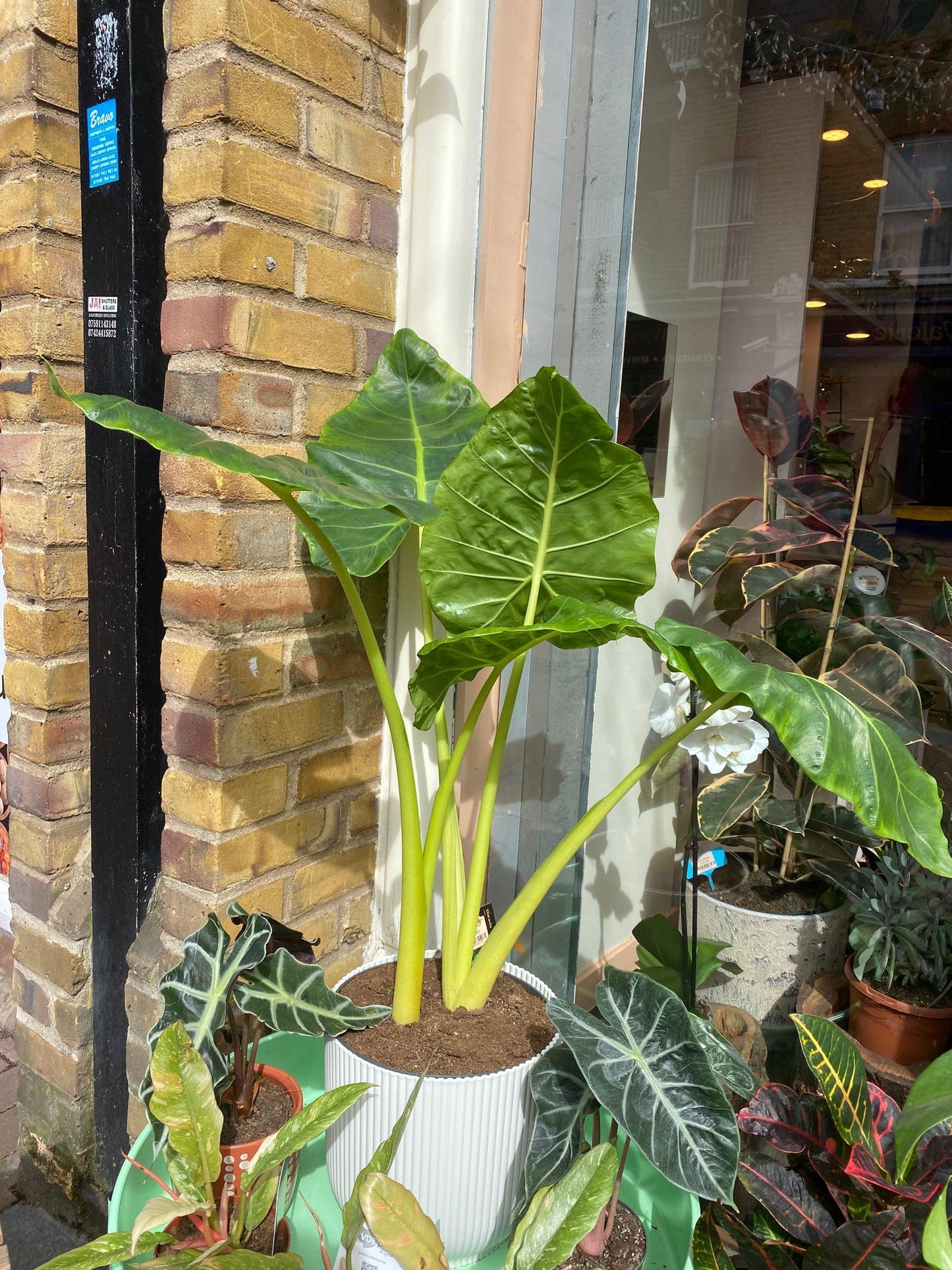 Alocasia 'Lutea', commonly known as the Lutea Elephant Ear, is a striking tropical plant known for its large, glossy leaves and vibrant yellow stems. This plant adds a bold, architectural element to any indoor or outdoor space.