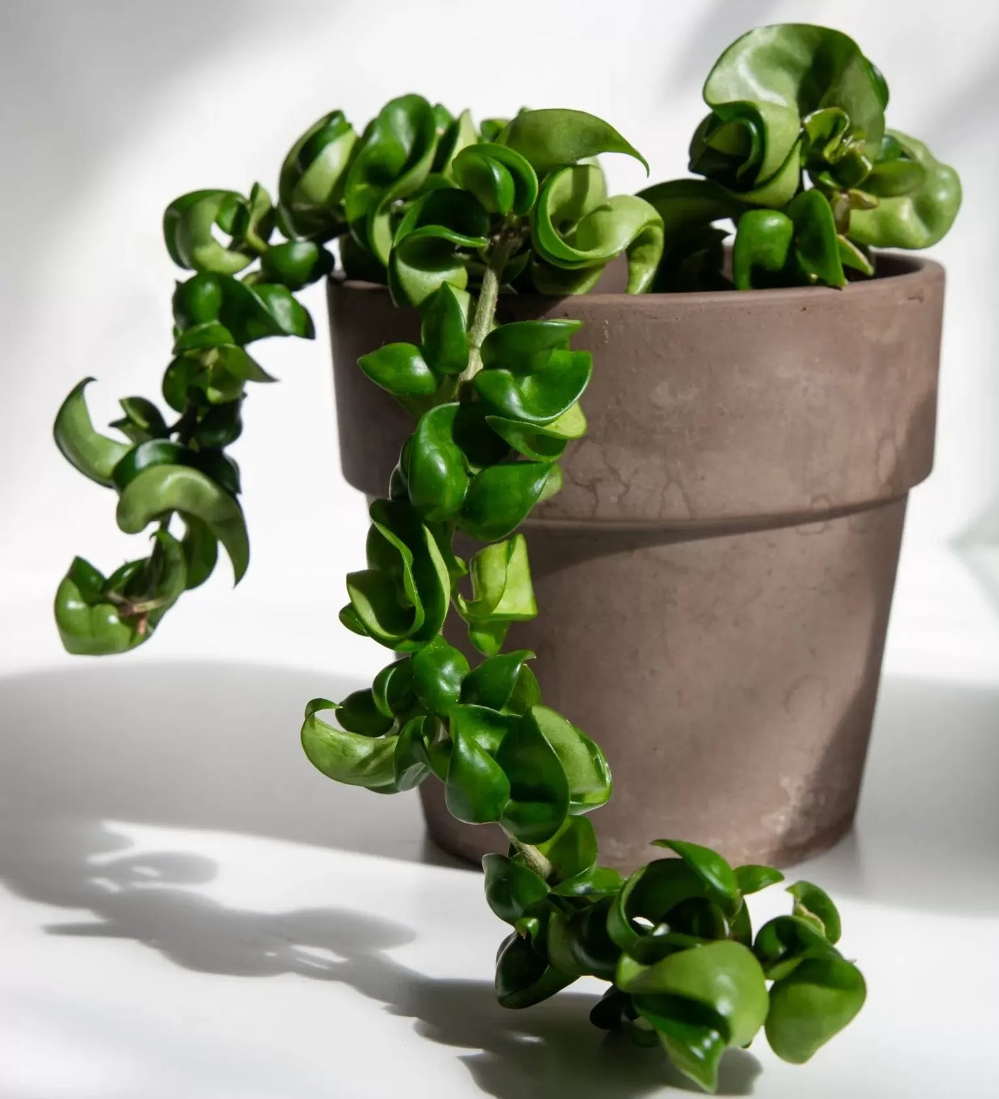 The Hoya compacta, also known as the Hindu Rope Plant, is a unique and attractive houseplant known for its twisted, waxy leaves and cascading vines. It is a member of the Apocynaceae family and is native to Southeast Asia and Australia. This plant is popular for its ornamental foliage and occasional fragrant, star-shaped flowers.