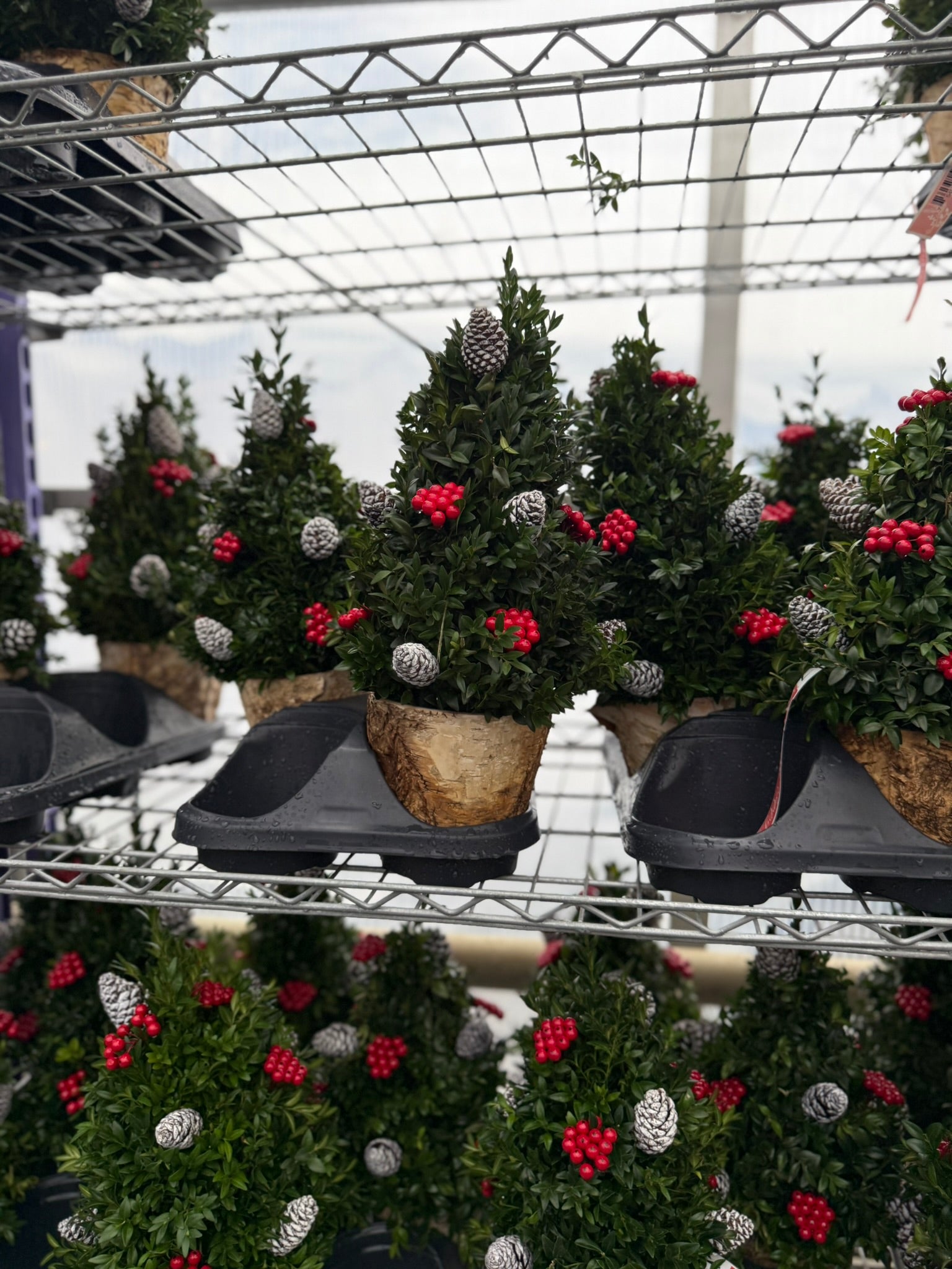 RedCrocus Boxwood Tree with Natural Ornaments – 1 Gallon Seasonal Decor