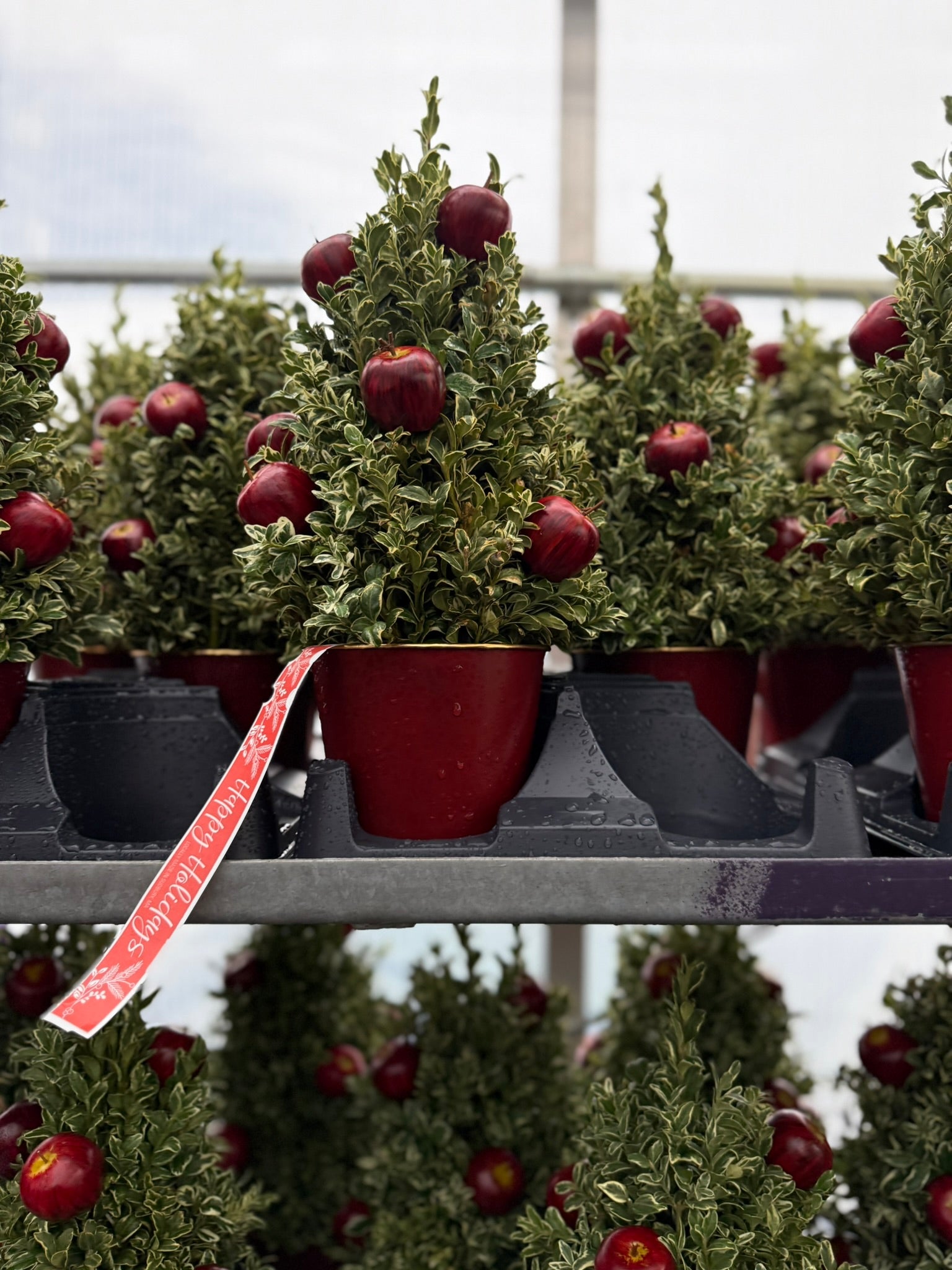 RedCrocus Boxwood Tree, Orgeonia Decorated