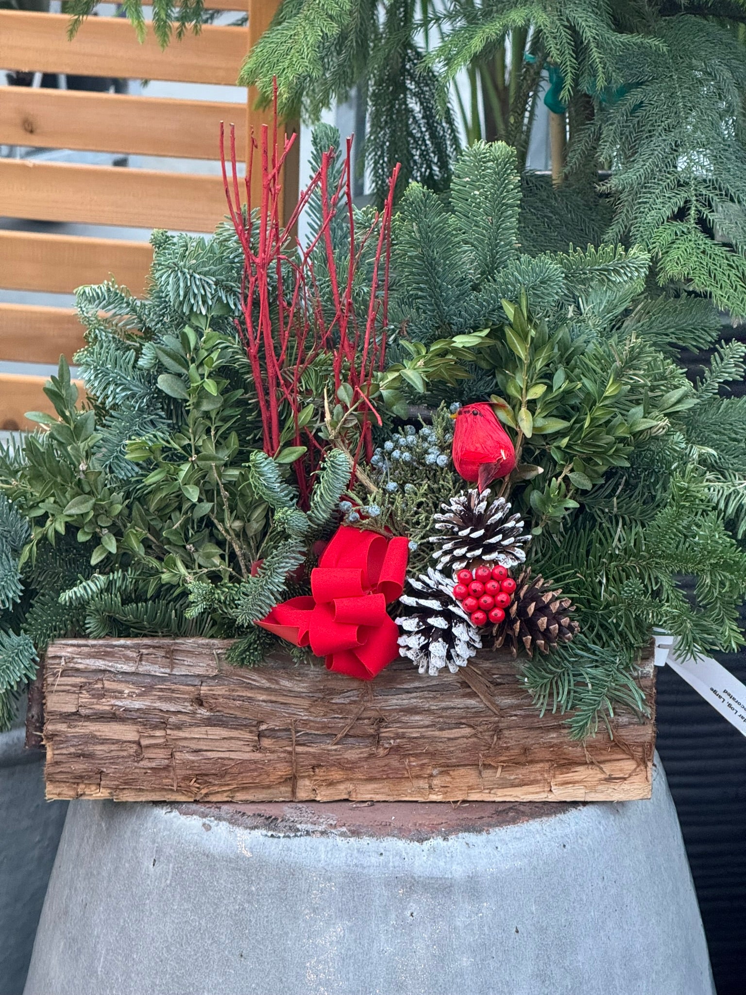 RedCrocus Cedar Log, Large, Decorated – Rustic Holiday Decor