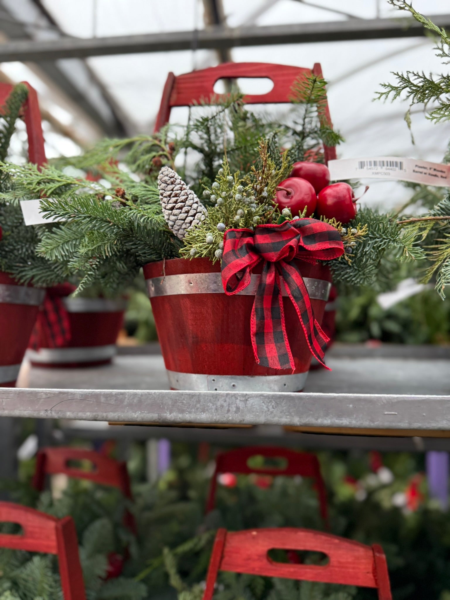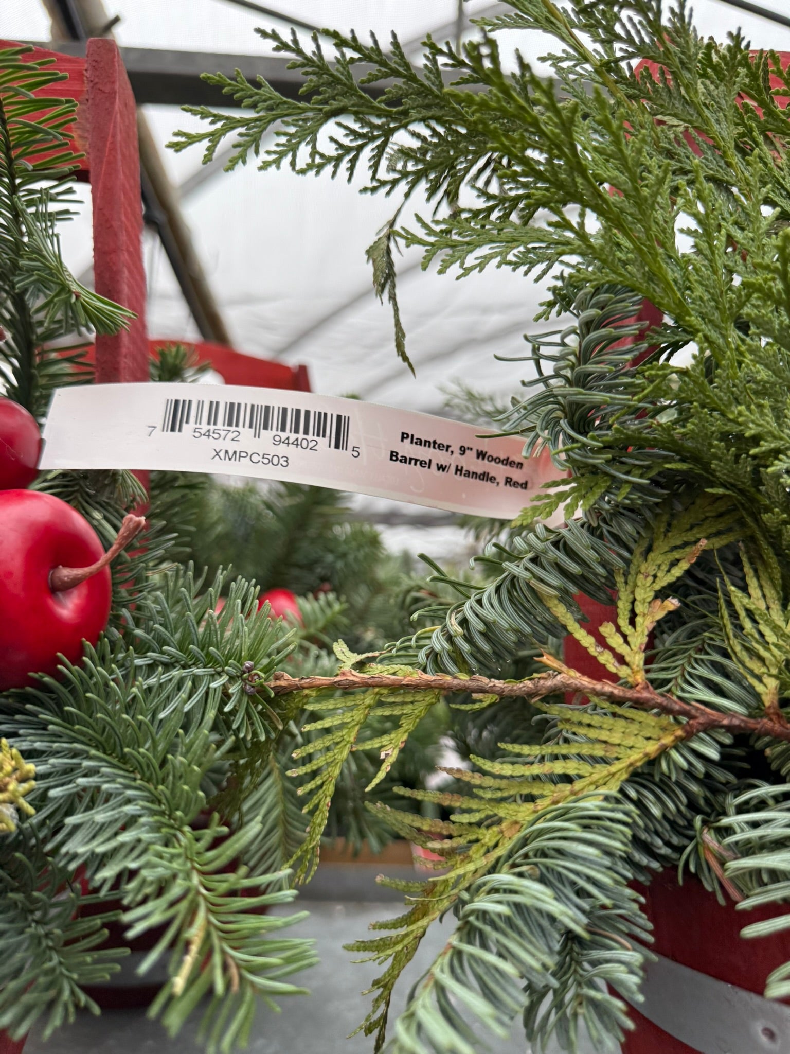 Bring cozy seasonal charm to your decor with this 9" wooden barrel planter in a festive red finish, complete with a convenient handle for easy placement. Ideal for holiday arrangements, centerpieces, and gifting.