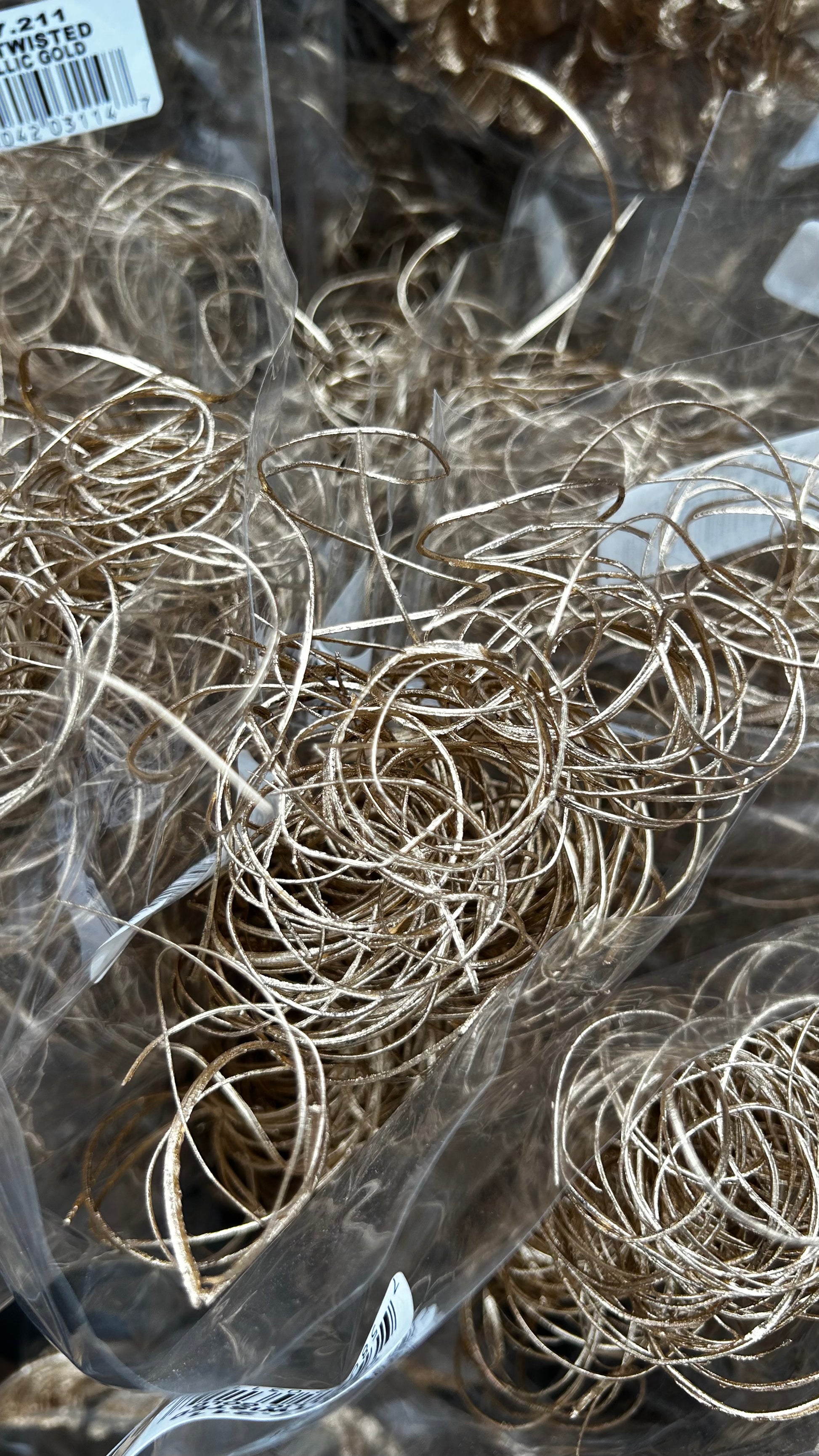 Add festive shimmer and lively texture to your seasonal decor with this gold metallic Curly Ting accent from RedCrocus. Its playful spirals bring instant movement and sparkle to holiday arrangements.