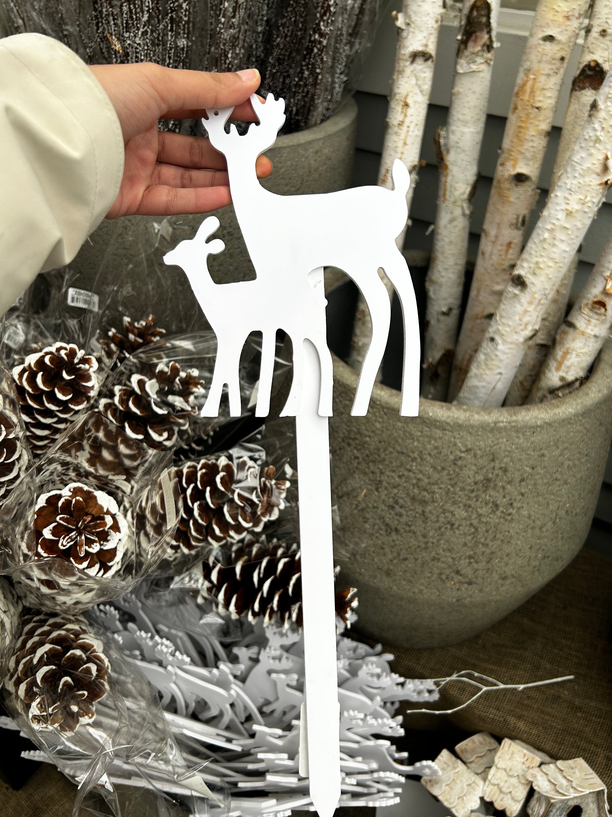 Add a crisp, wintry touch to your seasonal designs with this white reindeer accent pick from RedCrocus. At 12" long, it slips easily into wreaths, garlands, and centerpieces for instant holiday charm.